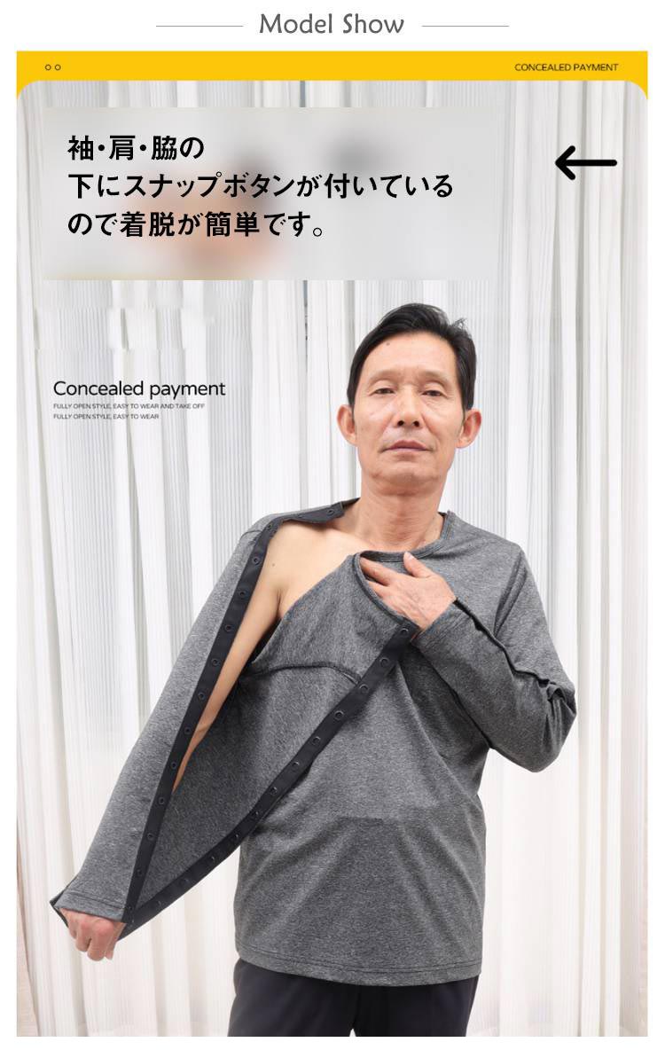介護用品 メンズ 介護服 tシャツ シニア 半袖 長袖 全開タイプ 入院服 通院用 術後ウエア 骨折 敬老の日 男性用 父の日 大きサイズ 春夏