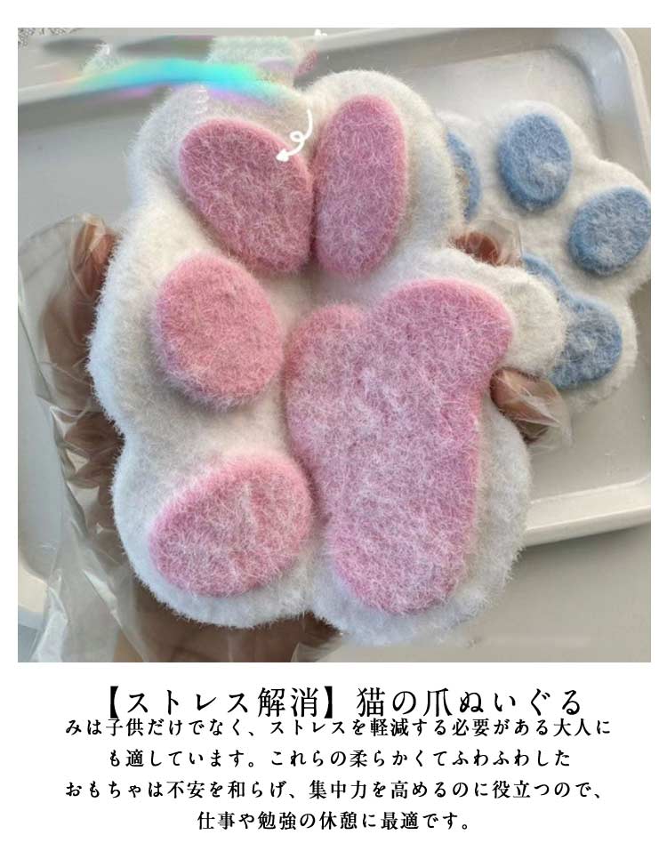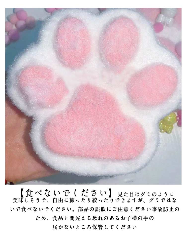 【かわいいデザインのスクイーズ】スクイーズ おもちゃの毛は接着ではなく巻き付けられています。11cmの大きな柔らかい猫の足。【ストレス解消】猫の爪ぬいぐるみは子供だけでなく、ストレスを軽減する必要がある大人にも適しています。これらの柔らかくてふわふわしたおもちゃは、不安を和らげ、集中力を高めるのに役立つので、仕事や勉強の休憩に最適です。【食べないでください】見た目はグミのように美味しそうで、自由に練ったり絞ったりできますが、グミではないので食べないでください。部品の誤飲にご注意ください!事故防止のため、食品と間違える恐れのあるお子様の手の届かないところに保管してください。【完璧なギフト】柔らかい猫の足のおもちゃは、誕生日、休日、その他の機会に最適です。かわいい猫のデザイン、満足のいく柔らかさ、ストレス解消効果で、子供から大人まで人気があります。