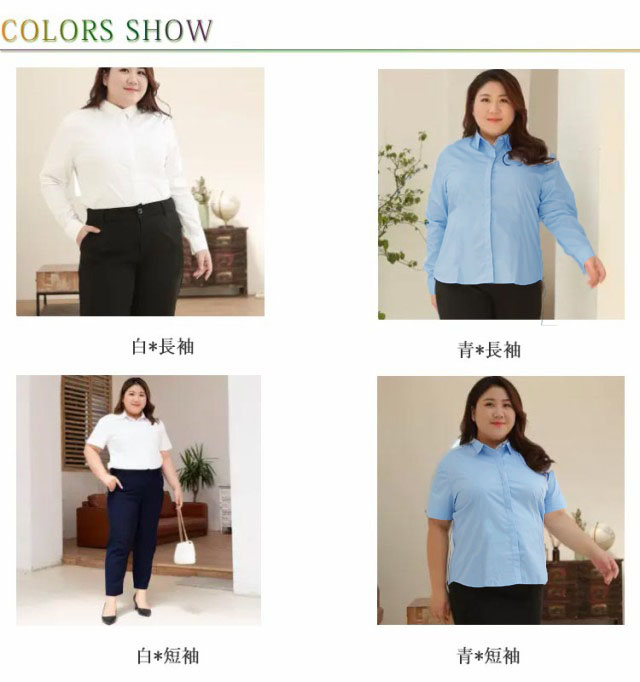 ワイシャツ 半袖 大きいサイズ 長袖 レディース シャツ ブラウス Yシャツ 白シャツ オフィス ビジネス リクルート 就活 開襟 スーツ インナー 事務服 制服 春 夏 秋 冬 ホワイト ブルー S M L XL 2XL 3XL 4XL 5XL 6XL 7XL 8XL