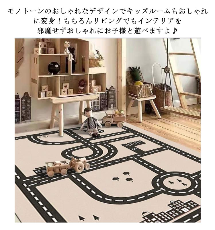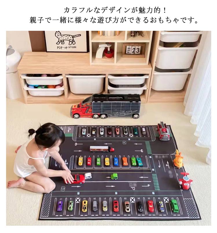 | お部屋のインテリアを邪魔しない?楽しく遊べるキッズプレイシートです。 駐車場に止めたり、横断歩道を走ったり、遊びながら公共のルールなどを自然と学べます。 かわいいイラストが書かれているのでごっこ遊びにも最適!お子様の想像力を豊かにしてくれます。 モノトーンのおしゃれなデザインでキッズルームもおしゃれに変身!もちろんリビングでもインテリアを邪魔せずおしゃれにお子様と遊べますよ? ポリエステル素材で汚してもさっと拭いてOK!いつでも清潔に使えます。 薄手素材なのでさっと広げられて、畳んで簡単に収納可能。 カラフルなデザインが魅力的!親子で一緒に様々な遊び方ができるおもちゃです。 | |