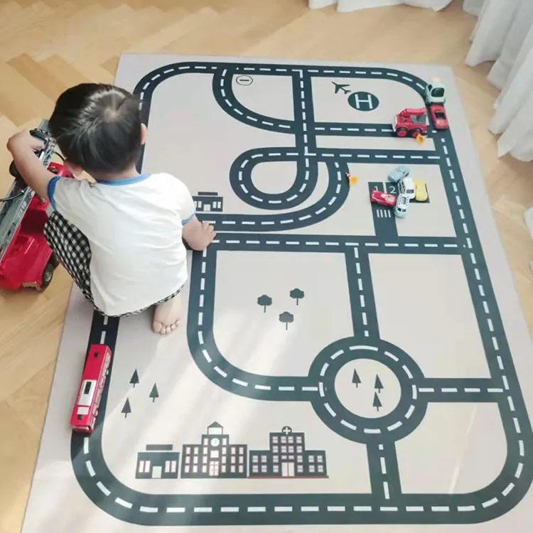 ミニカー 道路 線路 プレイシート プレイマット 道路シート おうち時間 お部屋遊び ステイホーム おしゃれ かわいい シンプル キッズプレイマット キッズ 子供 知育 玩具 知育玩具 おもちゃ プレゼント 車 カー