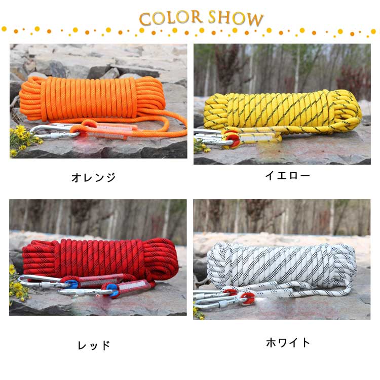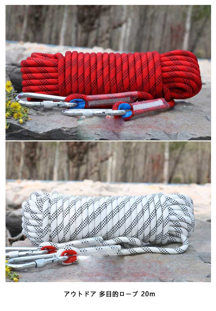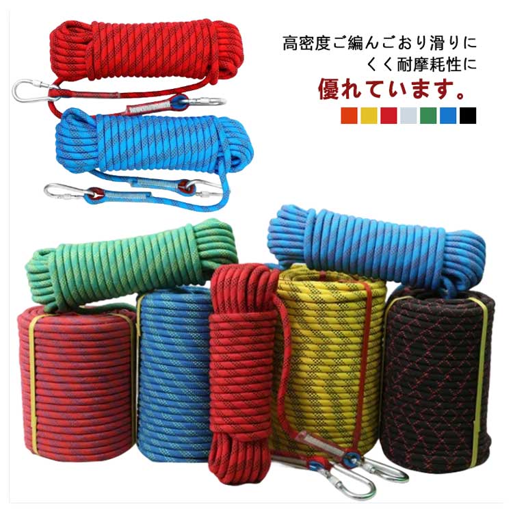 多目的 ロープ アウトドア 登山 キャンプ アウトドア ザイル クライミングロープ 引越し スタティックロープ パラコード エスケープ 荷物の吊上げ 防災道具 車の牽引 ボート 20m