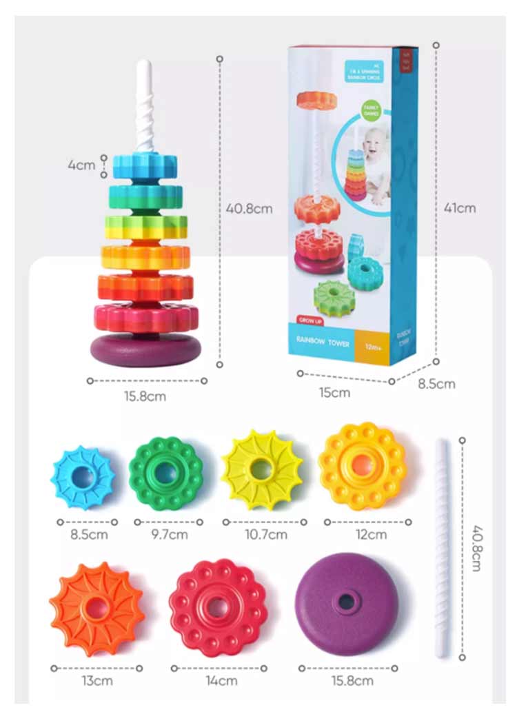 レインボータワー タワー スピンタワー スピンアゲイン 知育 玩具 赤ちゃん おもちゃ 子供 女の子 男の子 ベビー ビッグサイズ ギフト ねじ まわす 誕生日 クリスマス プレゼント 6歳以上