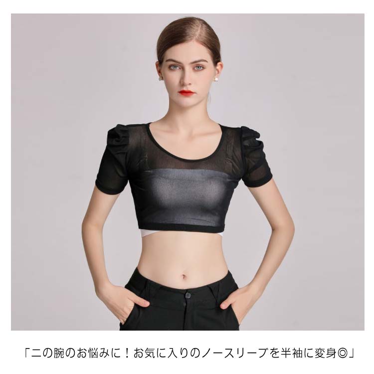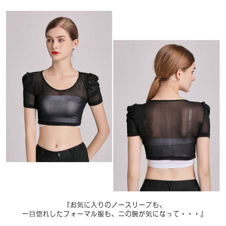 二の腕を隠す つけ袖 ノースリーブ 五分袖 体型カバー パフスリーブ ボリュウーム袖 インナーシャツ 着痩せ 細見え 振り袖 付け袖 フレアスリーブ 透け感 白 ホワイト 黒 ブラック 送料無料