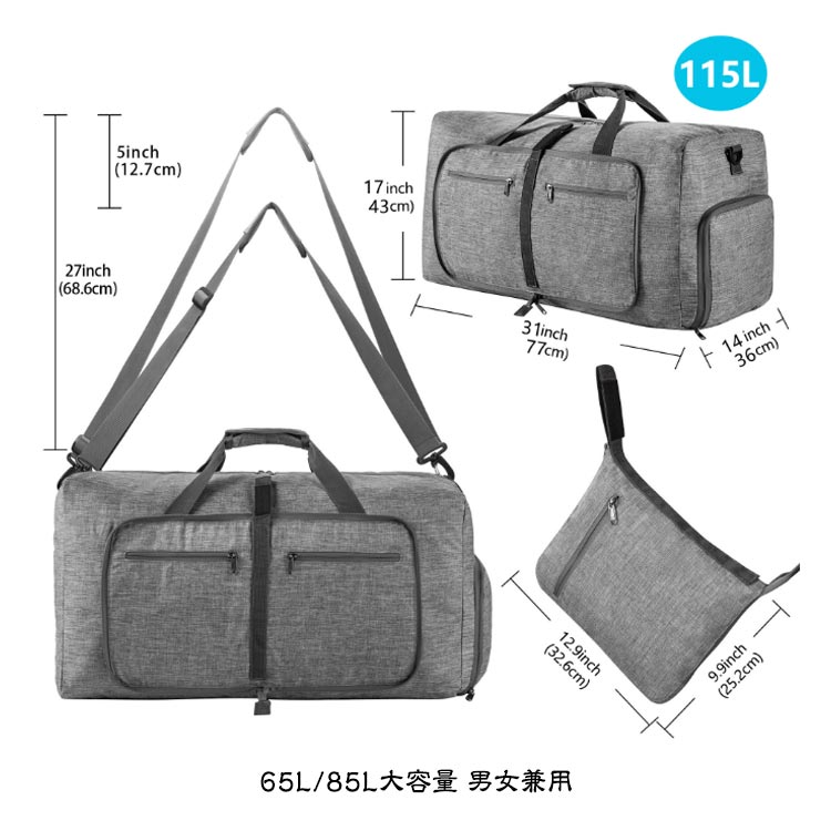 65L 85L 115L15色選べる!防水・耐磨・折り畳むことも可能 65L/85L大容量 男女兼用大容量で旅行にも普段用にも便利な折りたたみボストンバッグ。ボストンバッグは高品質なオクスフォード素材を採用し、耐磨耗性、耐久性にも優れております。防水加工に加えて、雨、水などからバッグの中身に大事な荷物をしっかり守ります。ファスナーもSBSという素材を作りますので、磨耗に強く耐久性があります。シューズ収納&乾湿分離ポケットが付いていますので、靴、濡れた服、タオル、水着などを分けて収納でき、他のアイテムを清潔に保つことができます。ロッドボックスに固定できるデザインでスーツケースに掛けて移動も楽々♪仕事、外出、出張、旅行、アウトドア、通学、ゴルフ、野球、釣り、ショッピング、ジムなど様々なシーンに使える便利な折りたたみ式キャリーバッグです。