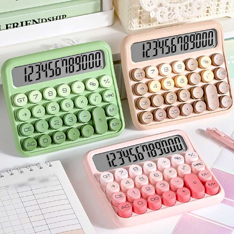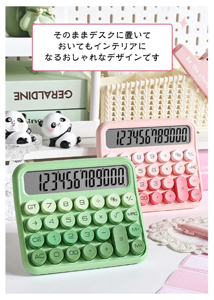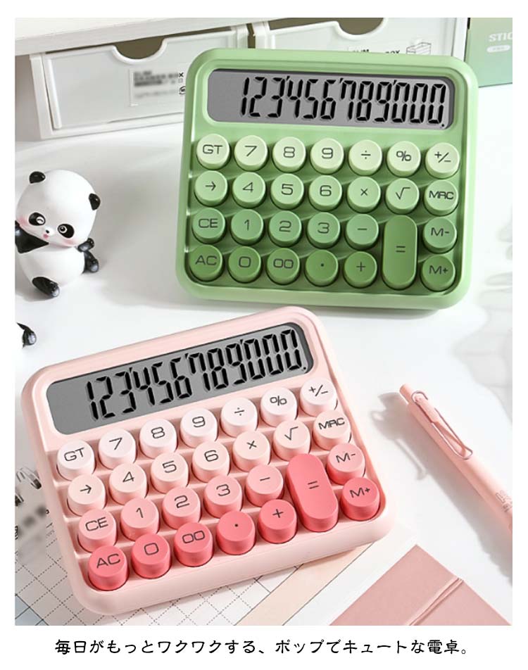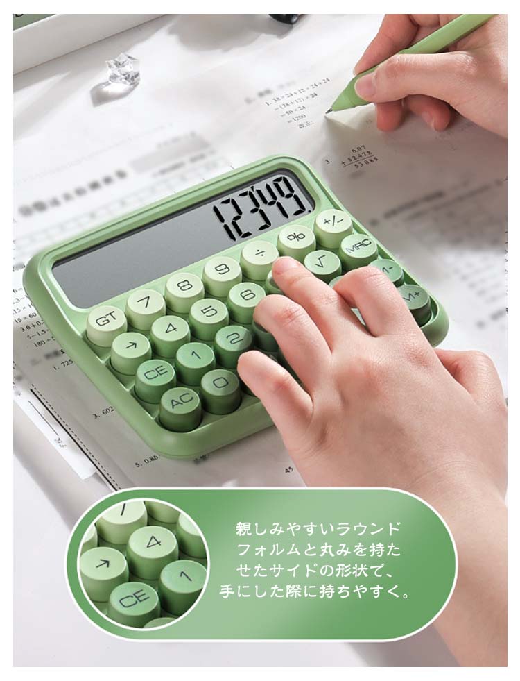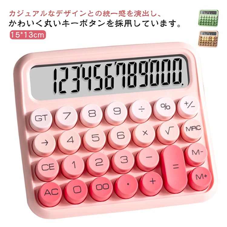 電卓 かわいい 12桁 計算機 おしゃれ 大型ディスプレイ 持ち運び便利 滑り止め 丸ボタン 人間工学設計 オフィス 家庭 学校用