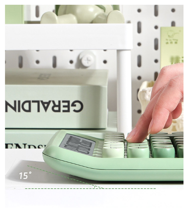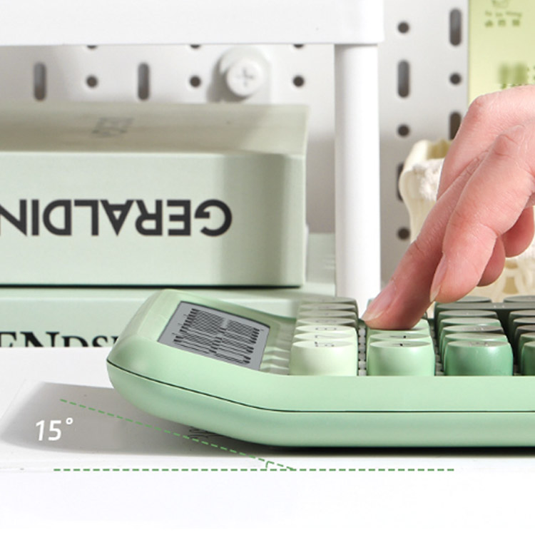 | カジュアルなデザインとの統一感を演出し、かわいく丸いキーボタンを採用しています。 そのままデスクに置いておいてもインテリアになるおしゃれなデザインです 親しみやすいラウンドフォルムと丸みを持たせたサイドの形状で、手にした際に持ちやすく。 毎日がもっとワクワクする、ポップでキュートな電卓。 | |
