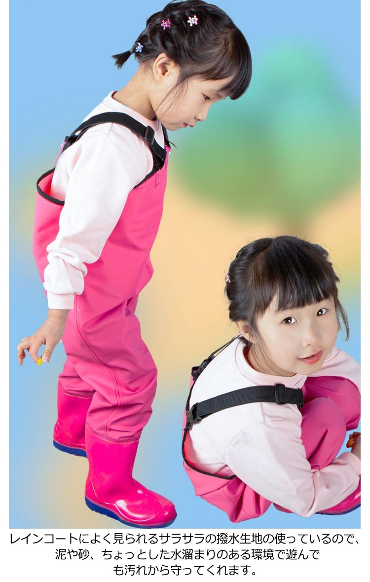 プレイウェア お砂場着 子供 胴長 オーバーオール 砂場 レインパンツ レインシューズ キッズ レインウェア ズボン 子供用 ウェーダー 胴長 レインパンツ 胴付長靴 サロペット 女の子 男の子 可愛い 遊び着 防水 防風 防汚 滑り止め 雨具 通学 おしゃれ