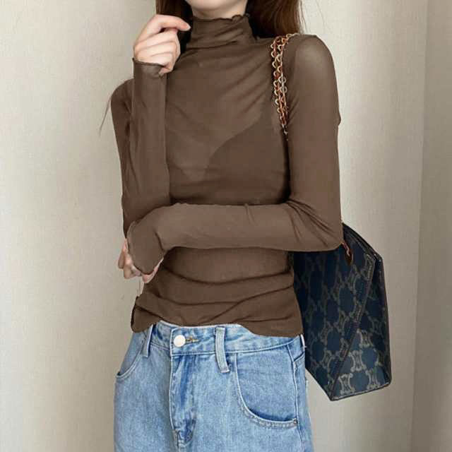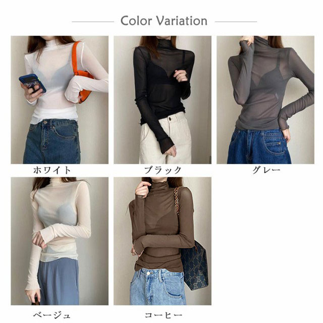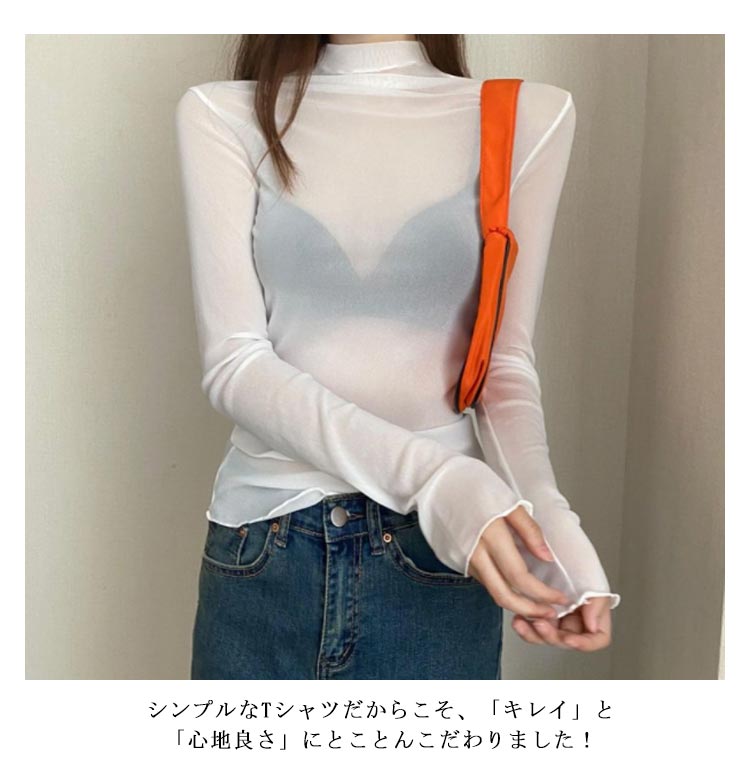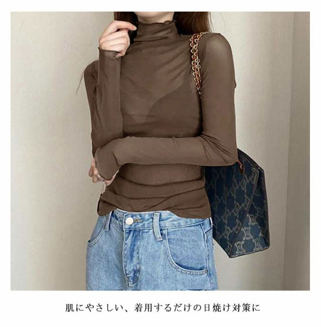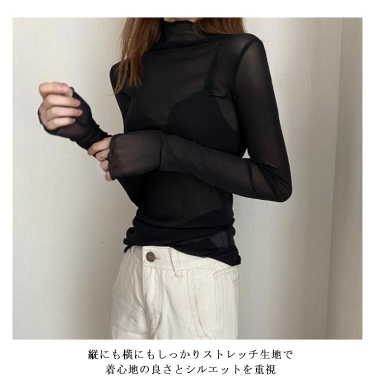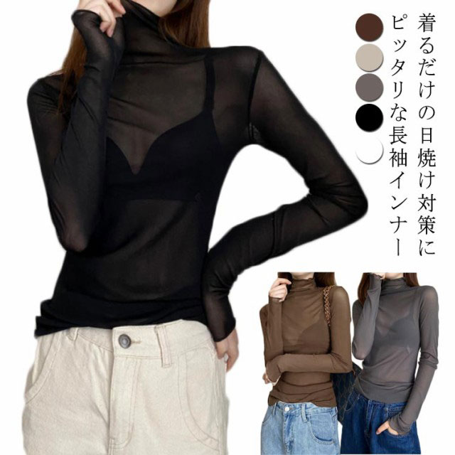 シアートップス 長袖 薄手 シアー トップス ハイネック レディース UV対策 紫外線対策 接触冷感 クール冷感 シースルー トップス レイヤード インナー セクシー 肌見せ きれいめ ミセス 20代 30代 40代 50代 送料無料