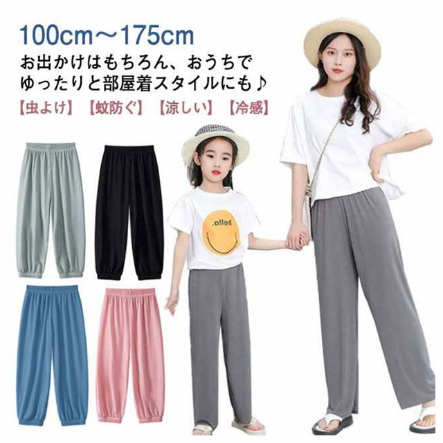 【100cm~175cm】【虫よけ】【蚊防ぐ】【涼しい】【冷感】お出かけはもちろん、おうちでゆったりと部屋着スタイルにも♪足裾にゴム付きのデザインで蚊の侵入が防がられ、子供の幼い肌をより良く守れるデザイン性と機能性兼ね備える一枚です。冷感生地を採用して、肌と接触した瞬間に温度を下げるクール感があり、夏の蒸れに対応する。ズボンのウエストの部分と裾の部分はゴムで、伸縮性があるので着脱ぎしやすいです。100~175cmのサイズをご用意しております。親子リンクコーデにぴったり!