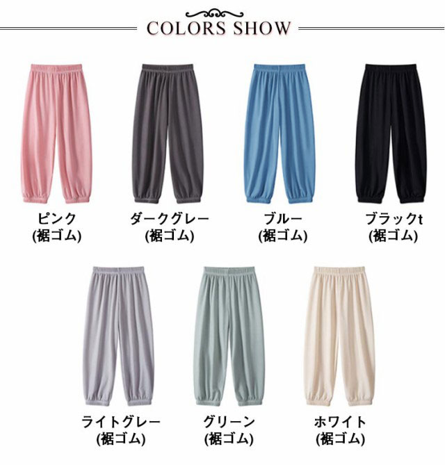 | 色 | ホワイト(裾ゴム) ブラック(裾ゴム) ピンク(裾ゴム) グリーン(裾ゴム) ブルー(裾ゴム) ライトグレー(裾ゴム) ダークグレー(裾ゴム) ホワイト(ワイド) ブラック(ワイド) ピンク(ワイド) グリーン(ワイド) ブルー(ワイド) ライトグレー(ワイド) ダークグレー(ワイド) |