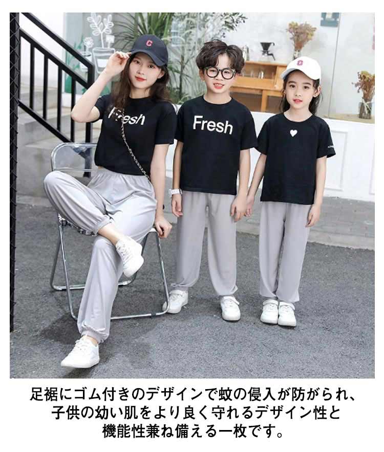 | 【100cm~175cm】【虫よけ】【蚊防ぐ】【涼しい】【冷感】 お出かけはもちろん、おうちでゆったりと部屋着スタイルにも? 足裾にゴム付きのデザインで蚊の侵入が防がられ、子供の幼い肌をより良く守れるデザイン性と機能性兼ね備える一枚です。 冷感生地を採用して、肌と接触した瞬間に温度を下げるクール感があり、夏の蒸れに対応する。 ズボンのウエストの部分と裾の部分はゴムで、伸縮性があるので着脱ぎしやすいです。 100~175cmのサイズをご用意しております。親子リンクコーデにぴったり! | |
