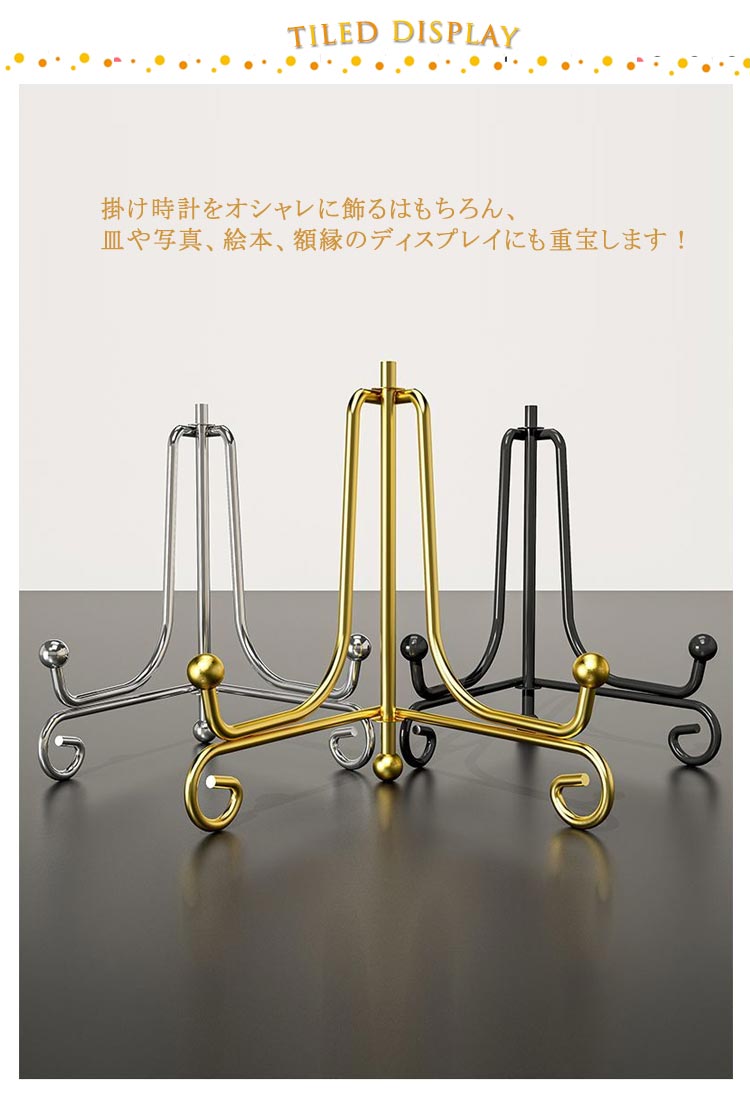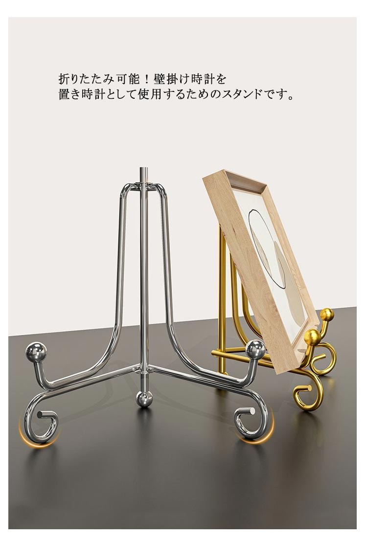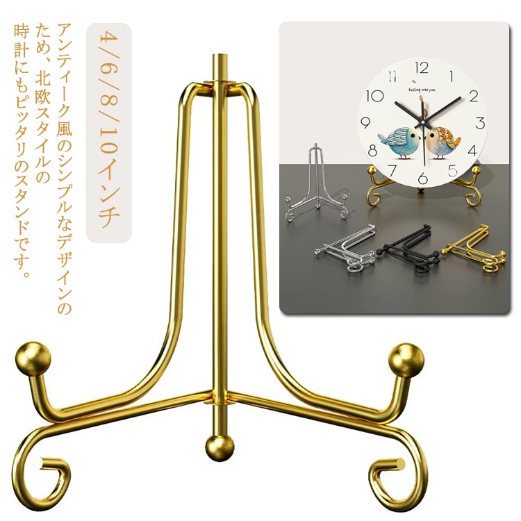 送料無料 時計 スタンド 掛け時計 スタンド 置き時計 ディスプレイスタンド 飾り台 プレートスタンド 折りたたみ 時計用スタンド アイアン 皿たて 皿立て 写真立て 本立て 絵本 額絵 展示 玄関 キッチン トイレ 三角形 おしゃれ 高級感 アンティーク調