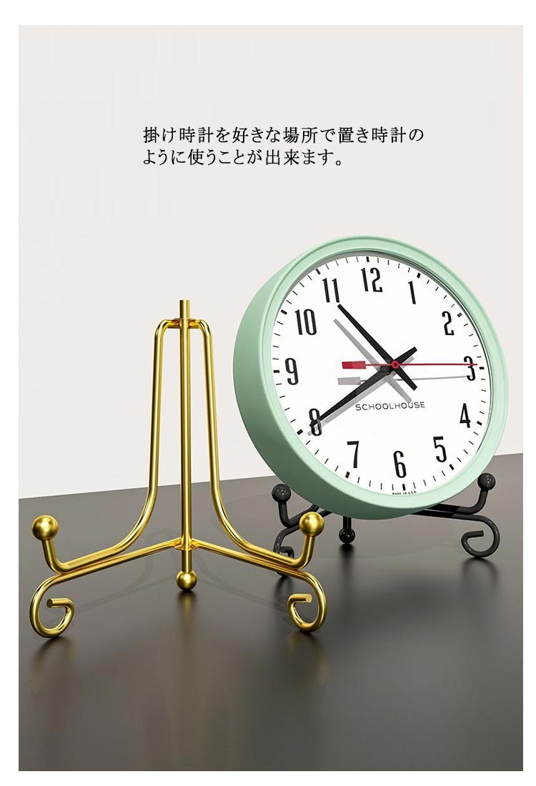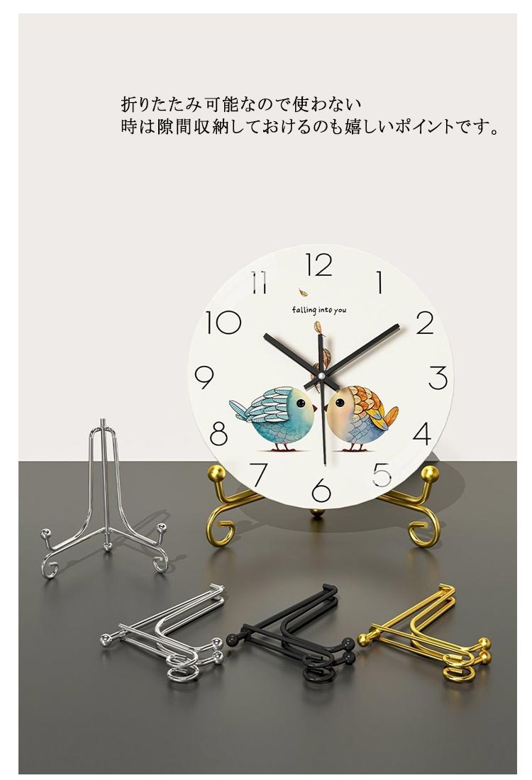 | アンティーク風のシンプルなデザインのため、北欧スタイルの時計にもピッタリのスタンドです。 掛け時計を好きな場所で置き時計のように使うことが出来ます。 掛け時計をオシャレに飾るはもちろん、皿や写真、絵本、額縁のディスプレイにも重宝します! 折りたたみ可能!壁掛け時計を置き時計として使用するためのスタンドです。 折りたたみ可能なので使わない時は隙間収納しておけるのも嬉しいポイントです。 | |