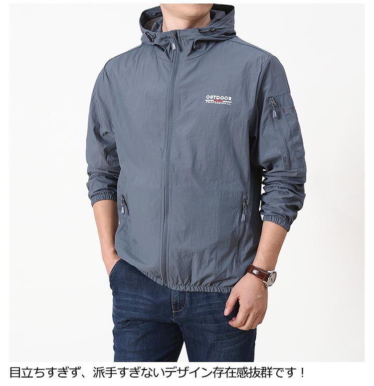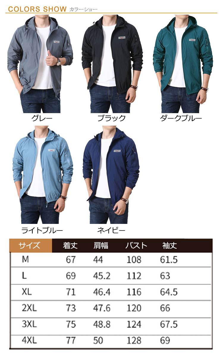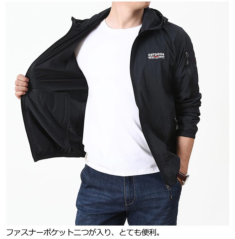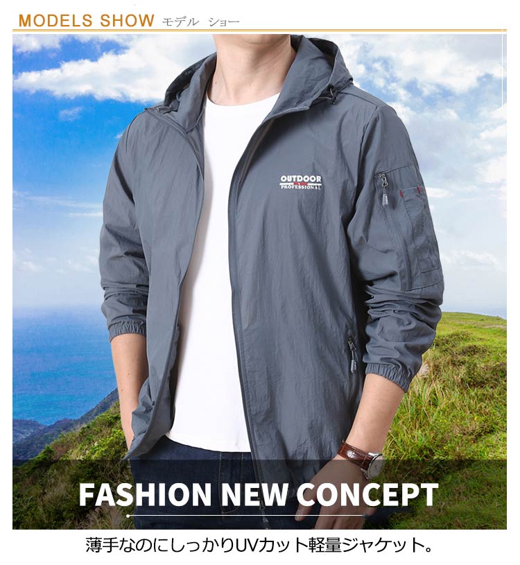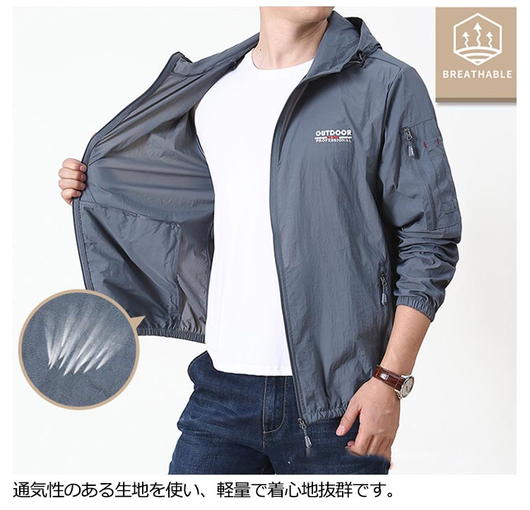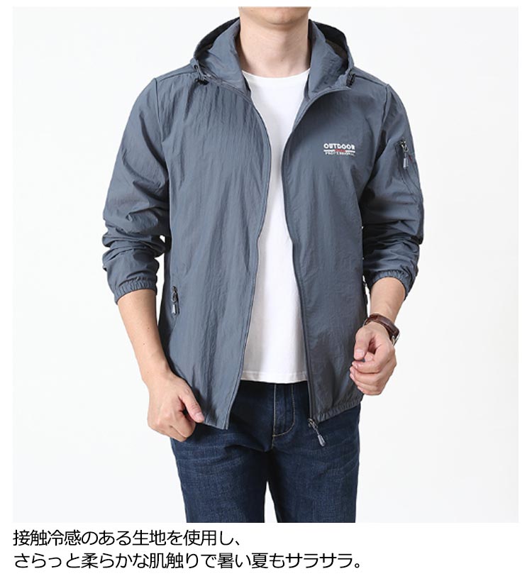 【接触冷感メンズラッシュパーカー】【M L XL 2XL 3XL 4XL 5XL】薄手なのにしっかりUVカット軽量ジャケット。接触冷感のある生地を使用し、さらっと柔らかな肌触りで暑い夏もサラサラ。通気性のある生地を使い、軽量で着心地抜群です。目立ちすぎず、派手すぎないデザイン存在感抜群です!ファスナーポケット二つが入り、とても便利。運動、山登り、釣り、野外作業、バイク、ハイキング、キャンプ、旅行、スポーツ観戦などアウトドアシーンにも適です。