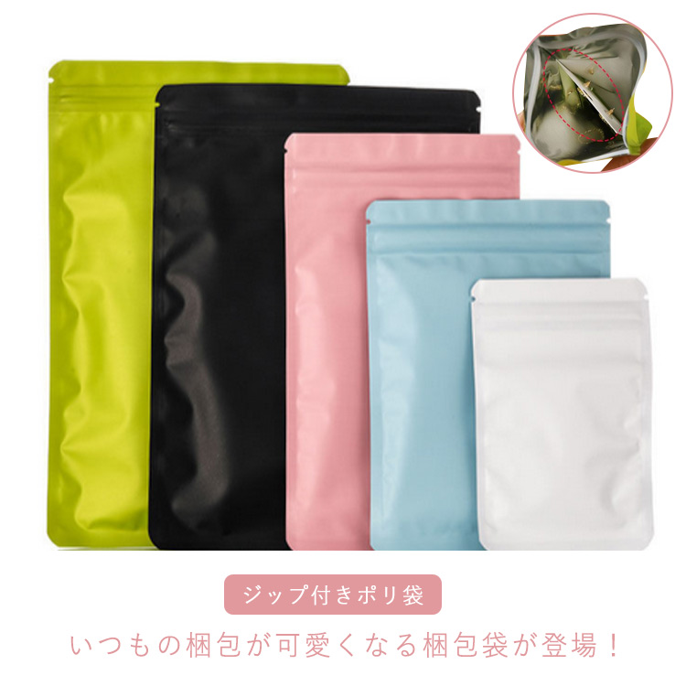 【ジップ付きポリ袋】 いつもの梱包が可愛くなる梱包袋が登場!ジッパー付きの袋ですので、袋の開閉を簡単に行うことができます。梱包以外にも小物入れたり紙類の水濡れ対策に使用したりアイディア次第で、様々なシーンで重宝します。