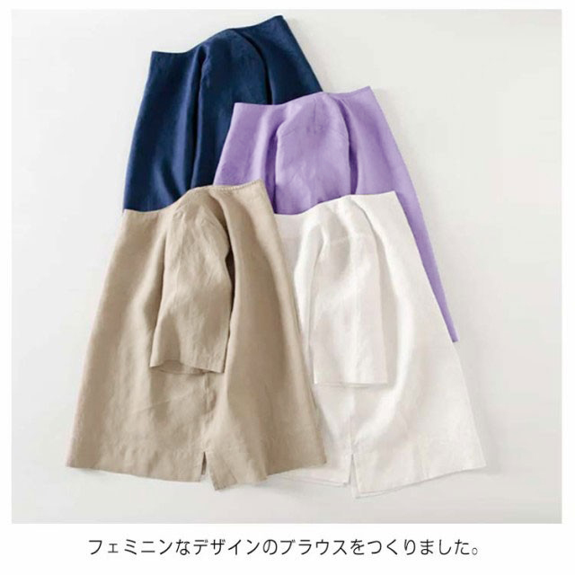 | 暑い季節こそ、ナチュラルな素材にこだわりたい。 フェミニンなデザインのブラウスをつくりました。 同素材のボトムと合わせて、セットアップも楽しめます。 | |