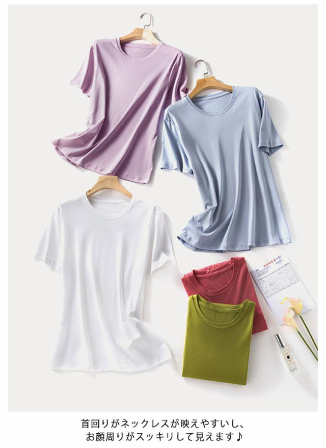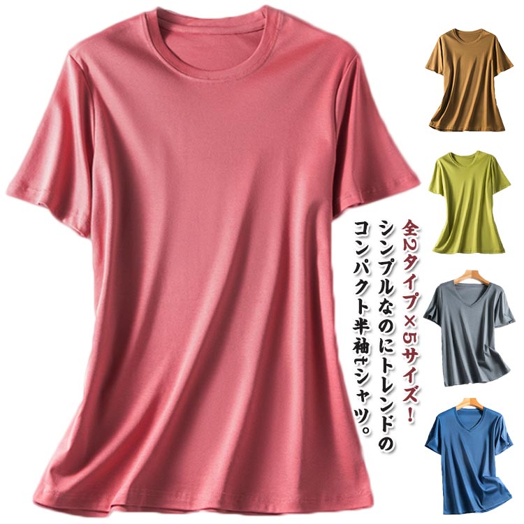 ひんやり 接触冷感 tシャツ vネック レディース 半袖 uネック トップス おしゃれ カットソー 冷感 快適 涼しい 着回し 無地 きれいめ レディース 体型カバー 大きいサイズ 20代 30代 40代 50代 60代 春 夏 秋