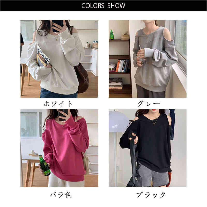 トレーナー 肩出し スウェット トップス レディース 肩あき プルオーバー カットソー 長袖トレーナー 肩出し トップス 肩開き プルオーバー 春秋 カットソー Tシャツ カジュアル 肩開き 肩見せ 肌見せ ゆったり 個性的 大きいサイズ 無地 可愛い 送料無料