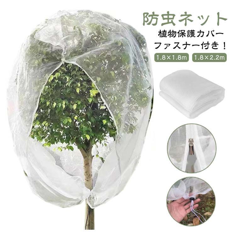 植物保護カバー 防虫ネット ファスナー付き!1.8×1.8m 1.8×2.2m園芸・プランター・菜園に最適。風・虫・鳥から植物をしっかり守ります。網目より小さい害虫の侵入は防げません。