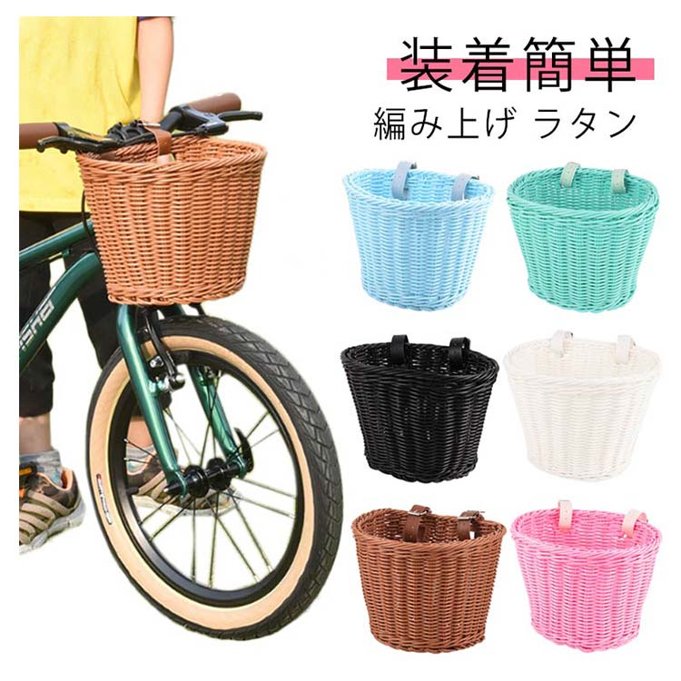 前かご ラタンバスケット 自転車 前掛けカゴ 前カゴ バスケット キッズ 子供用 自転車 バランスバイク キックバイク キックボード キックスクーター フロントバスケット 編み上げ ラタン 装着簡単 バックルバスケット ナチュラル 北欧風