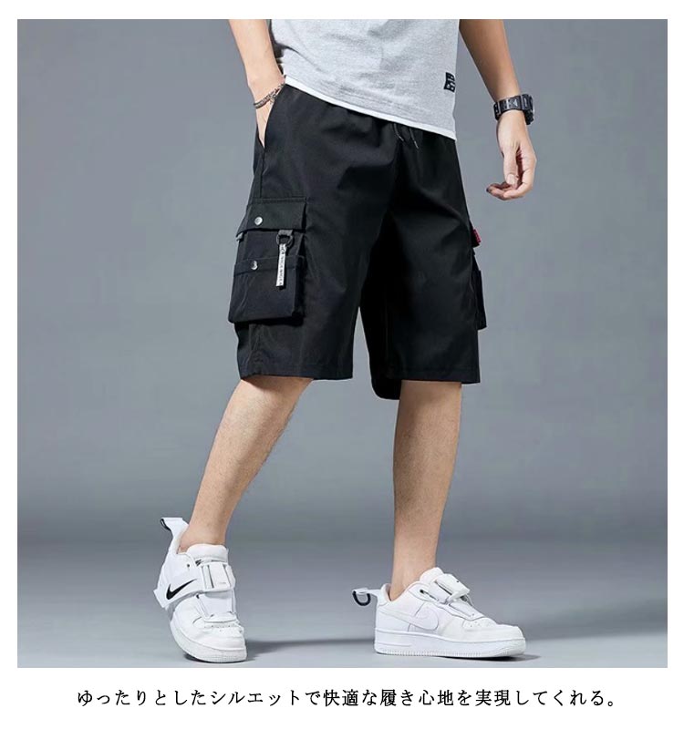 カーゴパンツ ハーフパンツ メンズ ショートパンツ ワイドパンツ かっこいい 無地 五分丈 膝丈 ハーフ丈 半ズボン 夏用 薄手 短パン 多ポケット ボトムス ミリタリーパンツ 通気性 ゆったり 大きいサイズ カジュアル アウトドア ゴルフウェア 送料無料 父の日