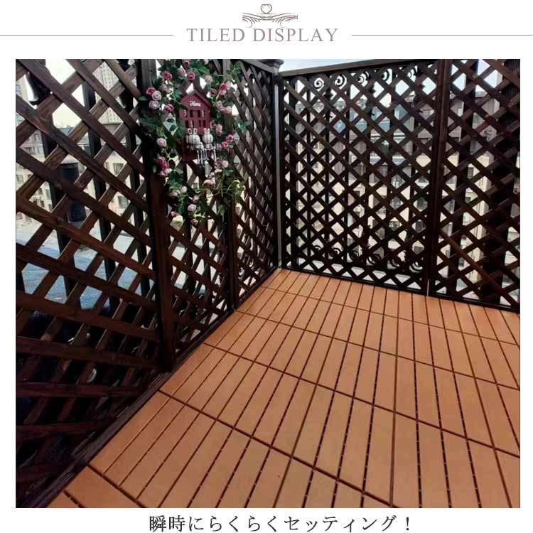 | 簡単なインストールで格上げ!瞬時にらくらくセッティング! 【良質な素材】プラスチックで作られ、無臭で膨張しにくく、優れた安定性を持つため、直射日光?豪雨?強風に耐えられ、オールシーズンで使用可能。 【簡単設置】工具要らずにパズルのように繋げるだけで女性でも気軽に設置ができる。 【お手入れ簡単】特有の防水設計により、床にホコリが溜まりにくく、床を清潔に保つことができます。 【気分次第の拡張利用も】ジョイントタイルは、ベランダや床、デッキなどの硬い平坦な表面に敷設することができ、スリッパなしの素足で使える。 | |