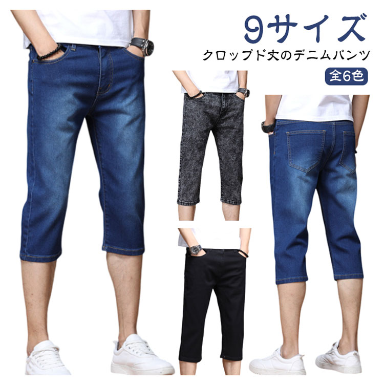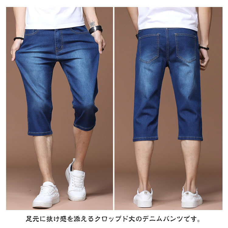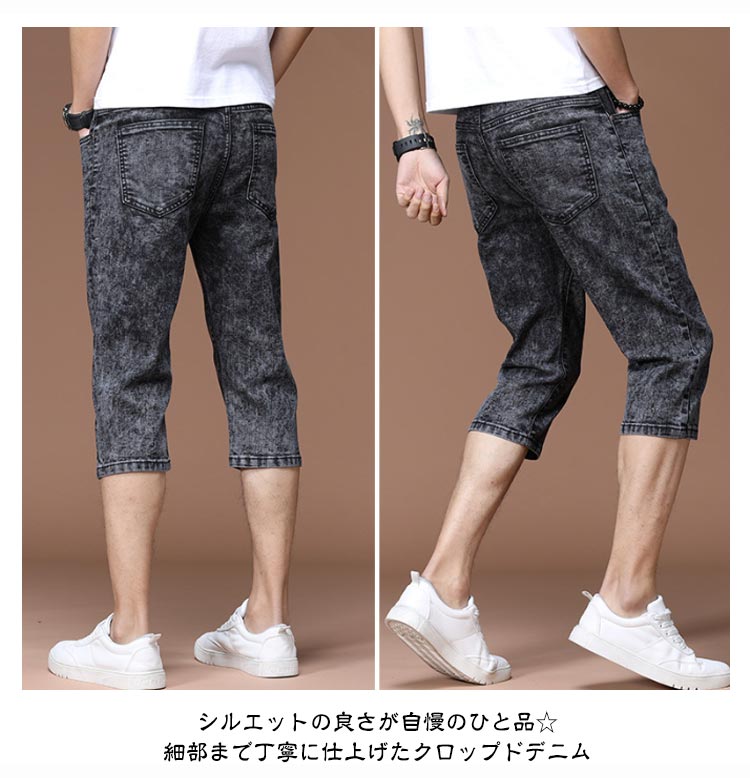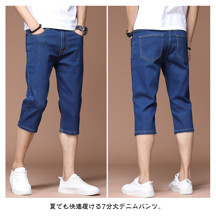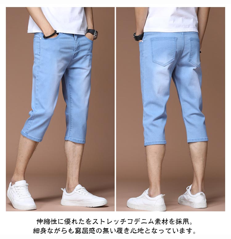 デニムパンツ メンズ クロップドパンツ 全6色 ボトムス 七分丈 テーパード カジュアル アメカジ キレイめ ストレッチ ハーフパンツ ひざ下 薄手 ショートパンツ デニム 7分丈 春夏 スキニーデニム ジーンズ ジーパン 半ズボン おしゃれ