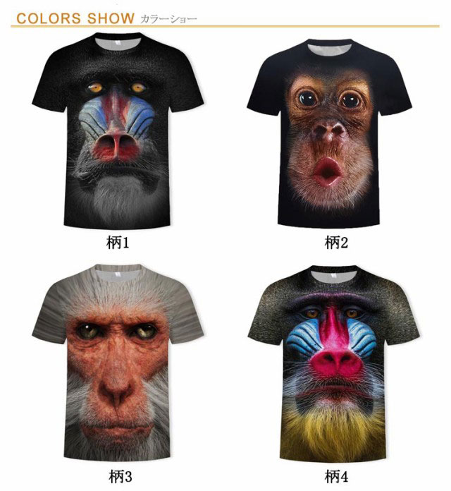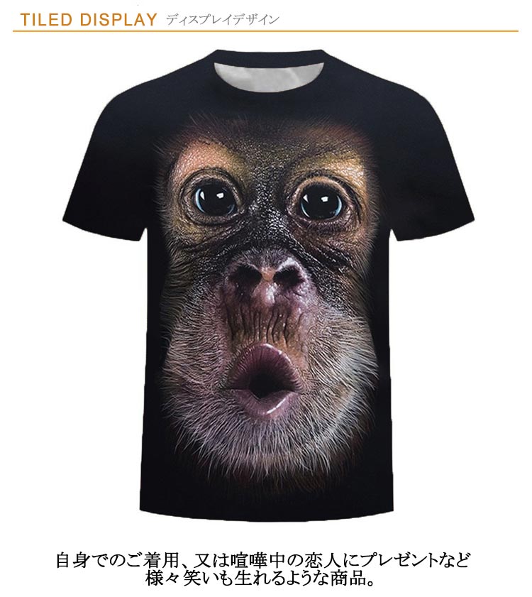 半袖 tシャツ メンズ 男性 アニマルプリント チンパンジー オラウータン ゴリラ 動物柄 ユニーク おもしろ tシャツ キッズ 子ども 110 120 130cm 速乾 吸汗 Tシャツ 猿 さる サル お猿さん うほうほ かわいい チンパンジー ブーブー 動物Tシャツ 送料無料