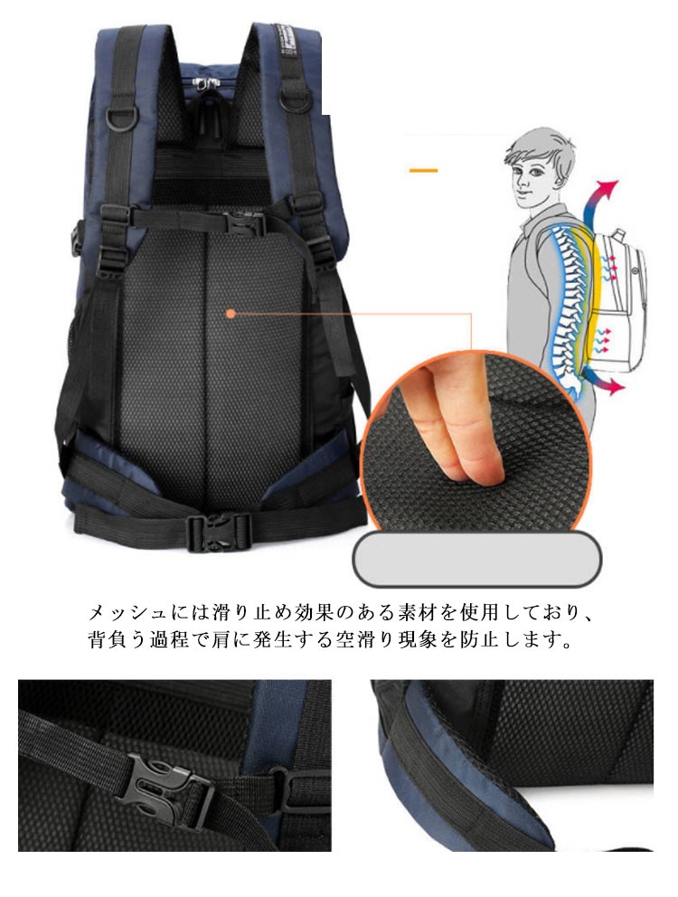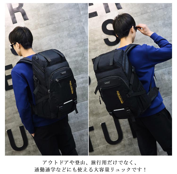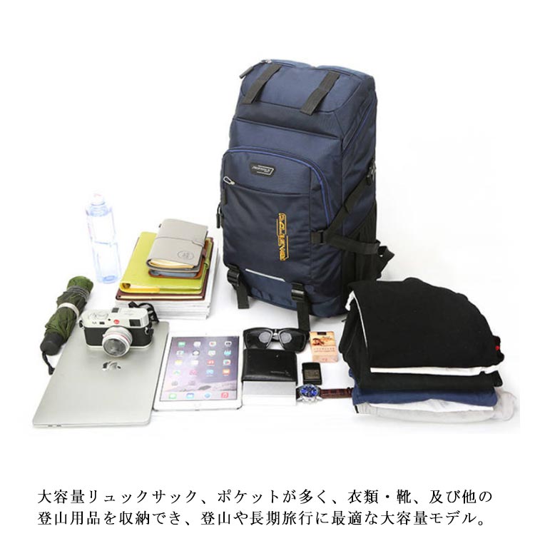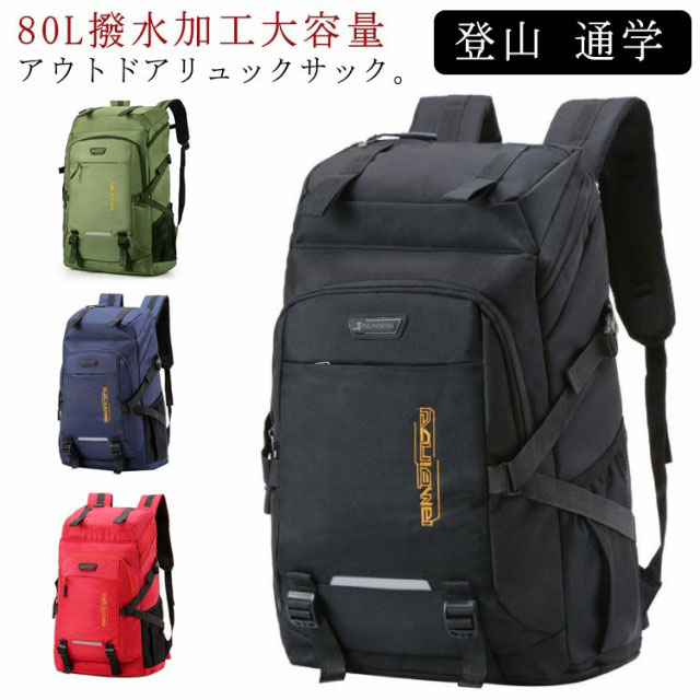 80L撥水加工大容量アウトドアリュックサック。大容量リュックサック、ポケットが多く、衣類・靴、及び他の登山用品を収納でき、登山や長期旅行に最適な大容量モデル。メッシュには滑り止め効果のある素材を使用しており、背負う過程で肩に発生する空滑り現象を防止します。 背面の快適さを保証することを前提として、最大限の透湿性と摩擦耐性効果を保証します。アウトドアや登山、旅行用だけでなく、通勤通学などにも使える大容量リュックです!軽量なので女性でも安心です。