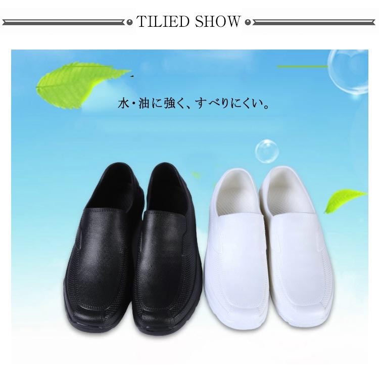 コックシューズ 厨房靴 作業靴 キッチン 耐油 EVA 軽量 ローカット スリッポン ワークシューズ 滑りにくい 疲れにくい 業務用 ユニフォーム レディース メンズ 男女兼用 飲食店向け 黒 白 ブラック ホワイト
