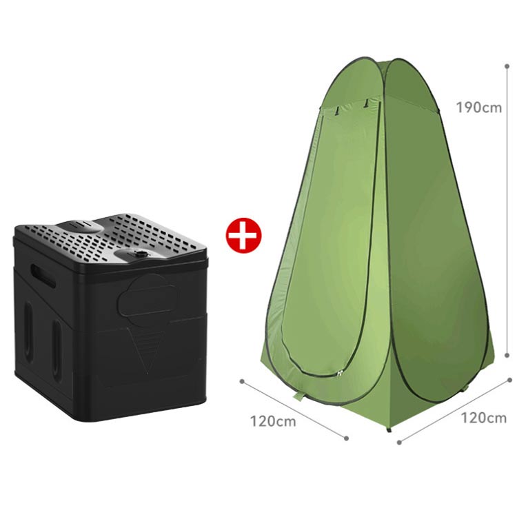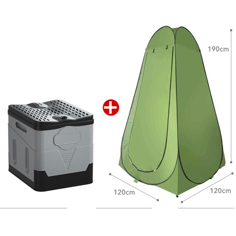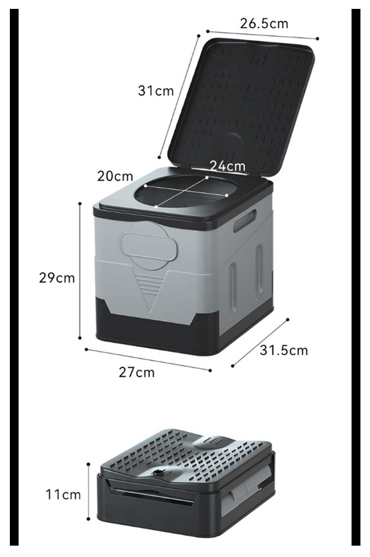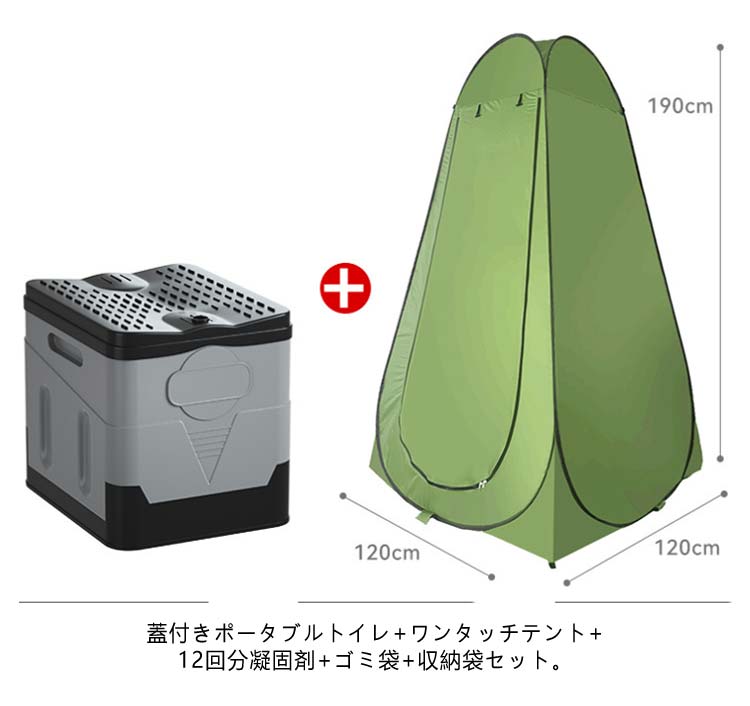 蓋付きポータブルトイレ+ワンタッチテント+12回分凝固剤+ゴミ袋+収納袋セット。便座一体型折りたたみ式ポータブルトイレです。 アウトドア、部屋や車の中、災害、断水の際に大活躍します。人間工学に基づいて設計されているので小さなお子様からお年寄りの方まで安心してお使いいただけます。ゴミ箱としてもお使いいただけます。狭い車内にも置くことができます。様々な場面で大活躍!介護用トイレ・屋外用トイレ・キャンプ・車用トイレ・登山・釣りなど幅広いシーンで活躍します。水洗いできるのでいつでも清潔を保てます。軽量設計なので持ち運び、組立て楽々!力の弱い方、女性、小さなお子様でも簡単に組立てることができます。また折りたたみ式で平らに収納できるため、収納場所に困りません。