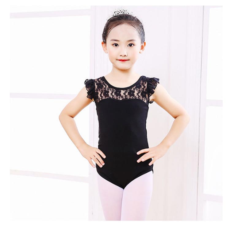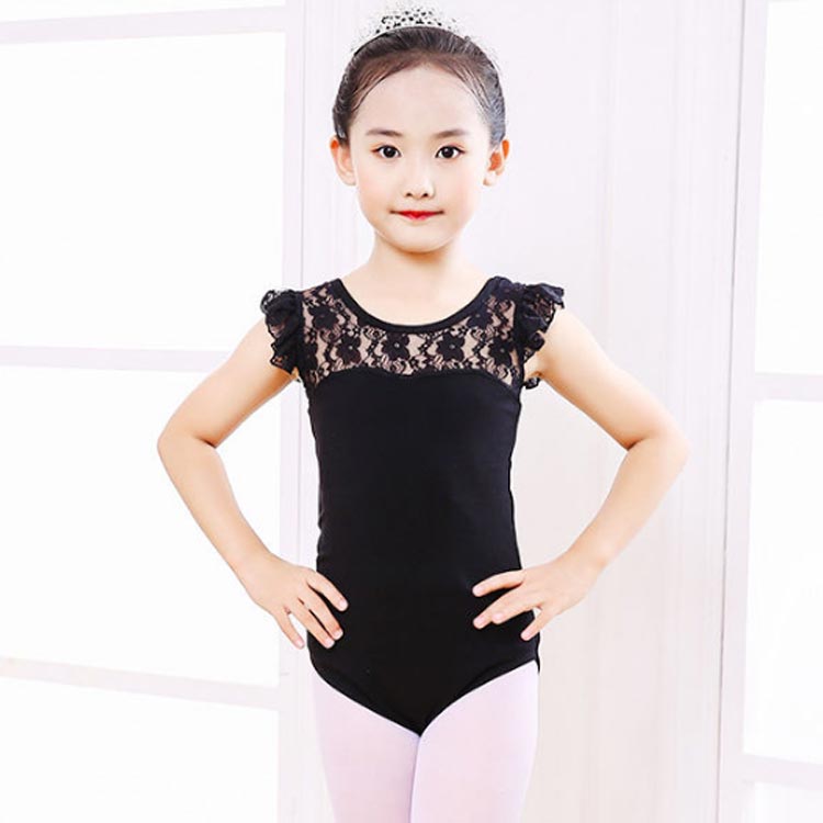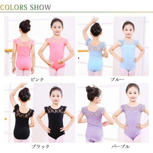 バレエ レオタード キッズ 子供 スカートなし 花柄 フリル レース バレエレオタード 半袖 黒 バレエ用品 ジュニア 女の子 110 120 130 140 150 160 送料無料