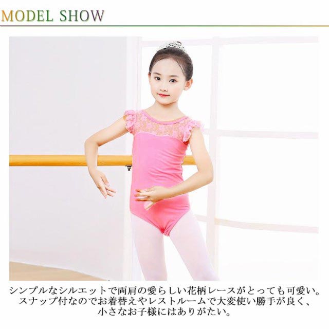 シンプルなシルエットで両肩の愛らしい花柄レースがとっても可愛い。スナップ付なのでお着替えやレストルームで大変使い勝手が良く、小さなお子様にはありがたい。高弾性のレースを使用しており、背中と腰ラインが綺麗に表現されるよう身体に沿ったデザインとなってます。ストレッチ性も高く、機敏性に優れています。バレエ・ダンス・体操等幅広くお使いいただけます。快適性を保ちつつ柔軟性・耐久性がしっかりしてます。なめらかな肌さわり、汗をかいてもサラサラ状態をキープ。夏は涼しく冬は暖か、高い吸水性で熱がこもらず蒸れにくい。防臭。サイズ選びはジャストサイズをオススメしております。伸張性も5-10cm程、ストレッチ性が高く動きやすい。上質な生地でしっかりしてるので長くご愛用できそうです。季節を問わずご利用いただけます。女の子ならきっと喜んでくれるはず。プレゼントにも最適です。