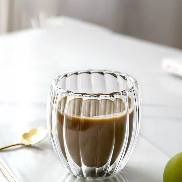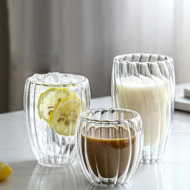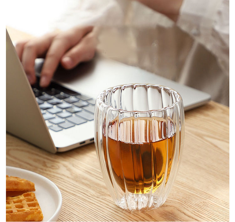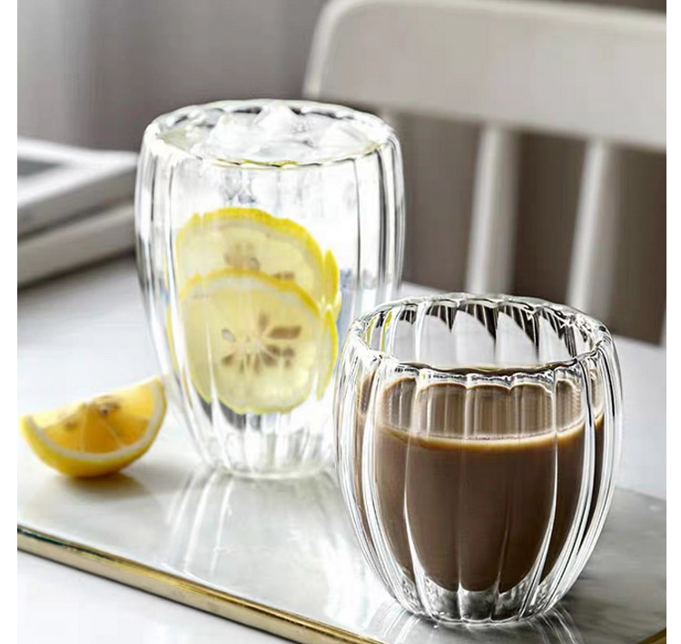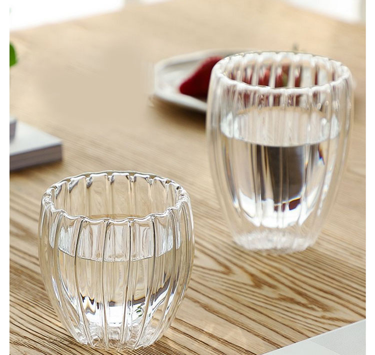 | ストライプに加工されたガラスが目を惹くダブルウォールグラスです。 2個セット 外気の影響を受けにくい保冷性?保温性に優れた二重構造です。冷たい飲みのものを入れても結露しにくいため、テーブルがすぐに濡れてしまうことも少ないです。 ダブルウォールデザインで、ドリンクはまるで宙に浮かんでいるように見え、飲みものの美味しさと同様に美しさも見事に演出してくれます。 シンプルながらも上品で美しい雰囲気が魅力的なグラスです。 | |