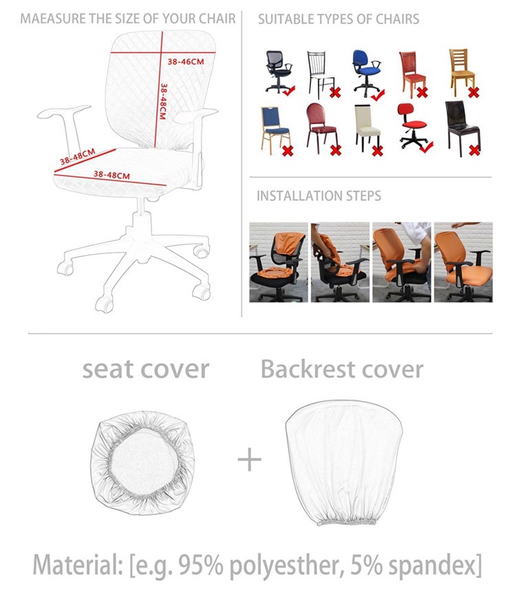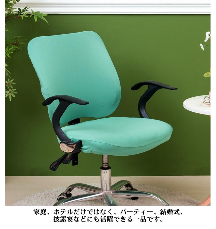 イスの汚れ防止やイメージチェンジに!ふんわりした厚手セパレート型チェアカバー。ストレッチの効く生地を使用し、柔らかくて肌触りもいいです。スタイリッシュで高級感のある生地、オフィスや事務所でもお使いもお勧め。質感のいい素材とともに、落ち着いた色合いで、部屋も明るくなれ、気分転換に変えたりできます。カバーを掛ける手間はあっという間、取り付け簡単です。洗濯機で丸洗い可能、乾きやすく、お手入れもとても便利です。家庭、ホテルだけではなく、パーティー、結婚式、披露宴などにも活躍できる一品です。