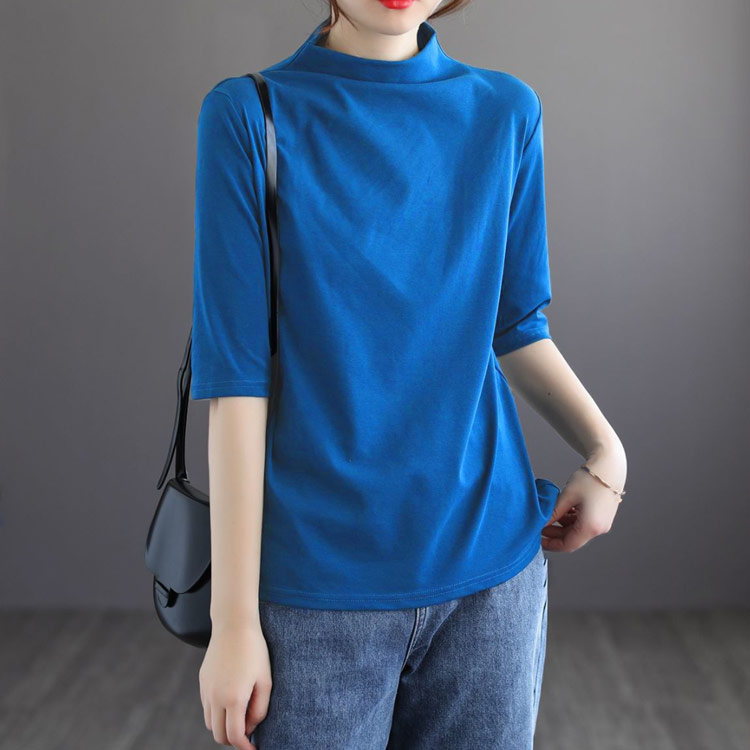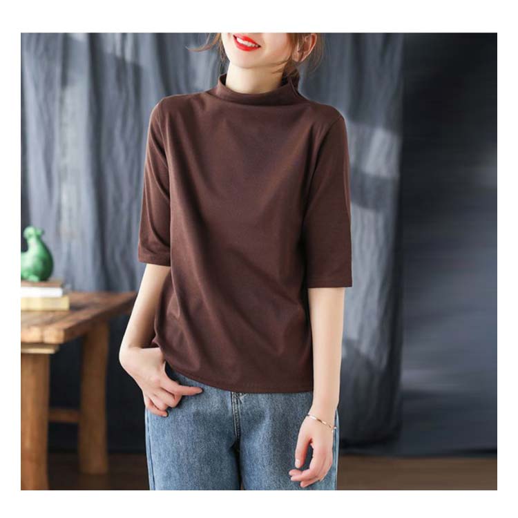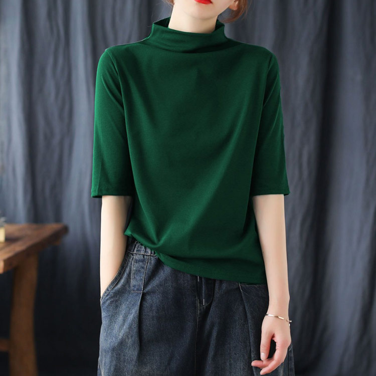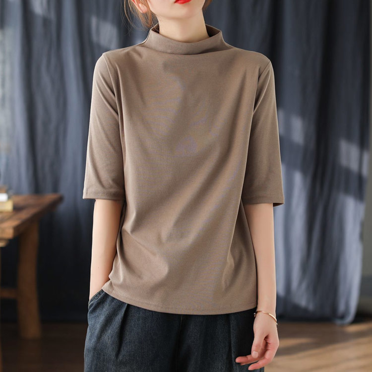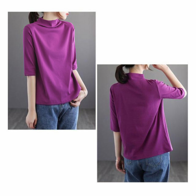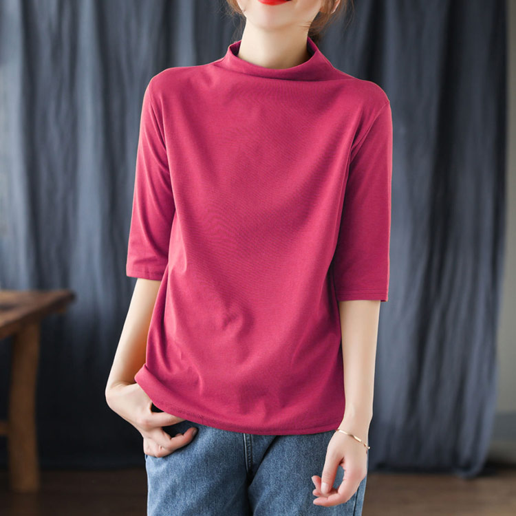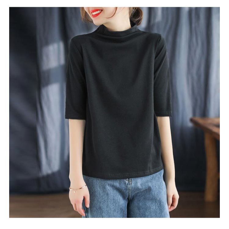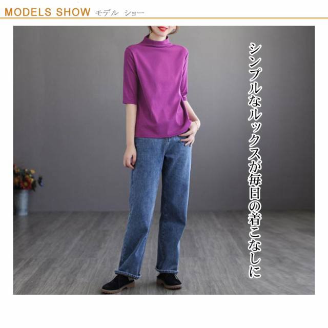 ハイネック Tシャツ レディース コットンtシャツ 五分袖 モックネック トップス ハイネックtシャツ 無地Tシャツ かわいい カジュアル 通勤 通学 白 黒 20代 30代 40代 50代 無地 シンプル おしゃれ 春夏 S M L XL 2XL 3XL 4XL