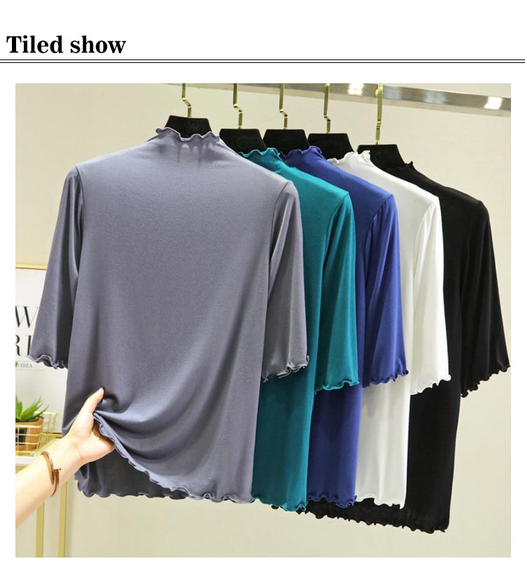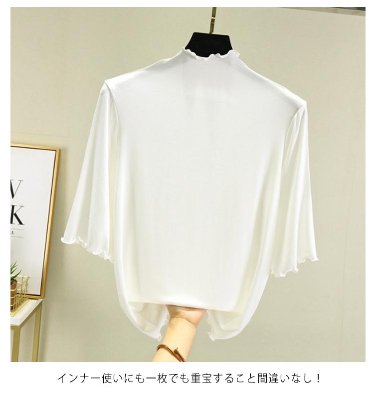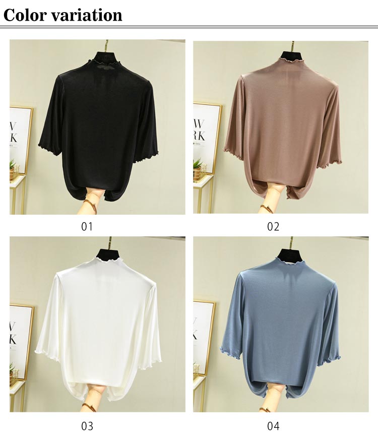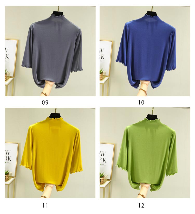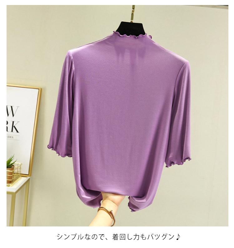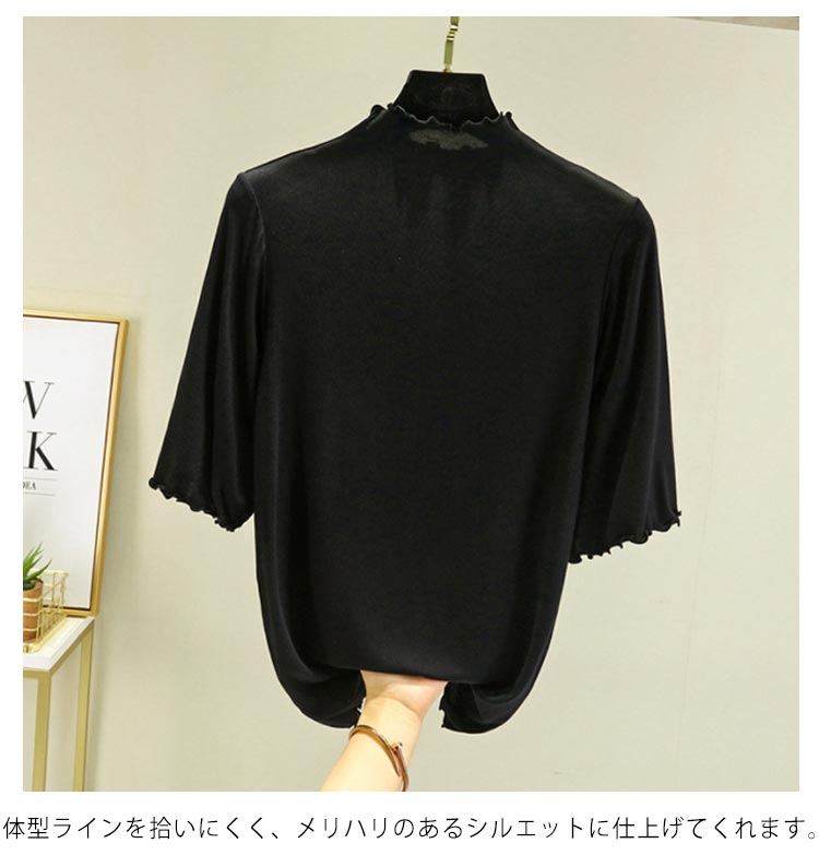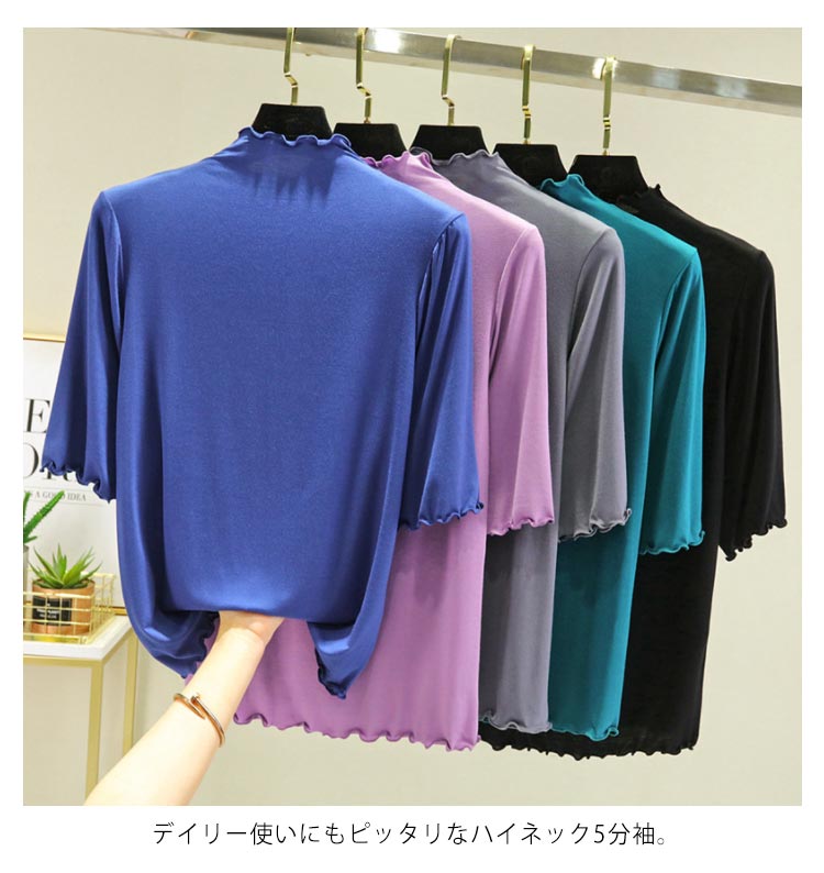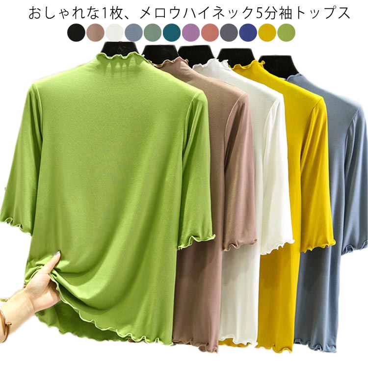 全12色×4サイズ ハイネック 半袖 レディース トップス 5分袖 Tシャツ タートルネック メロウネック インナー 伸縮性 五分袖 無地 カットソー シンプル カジュアル 大きいサイズ ボトルネック ゆったり 白 黒