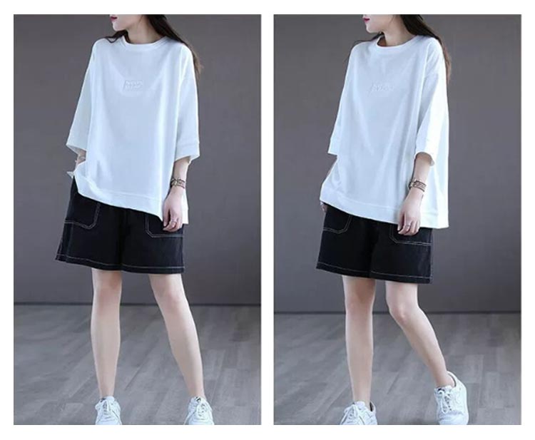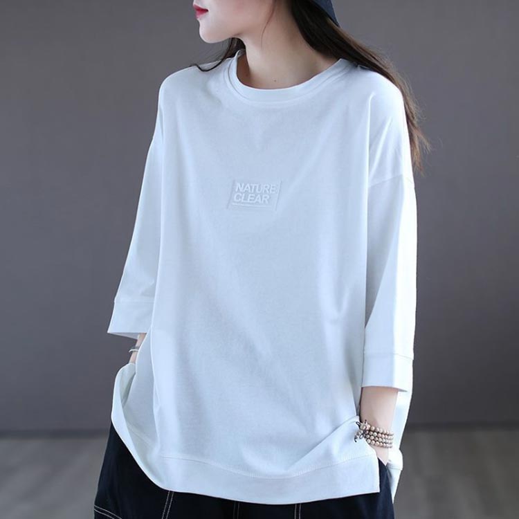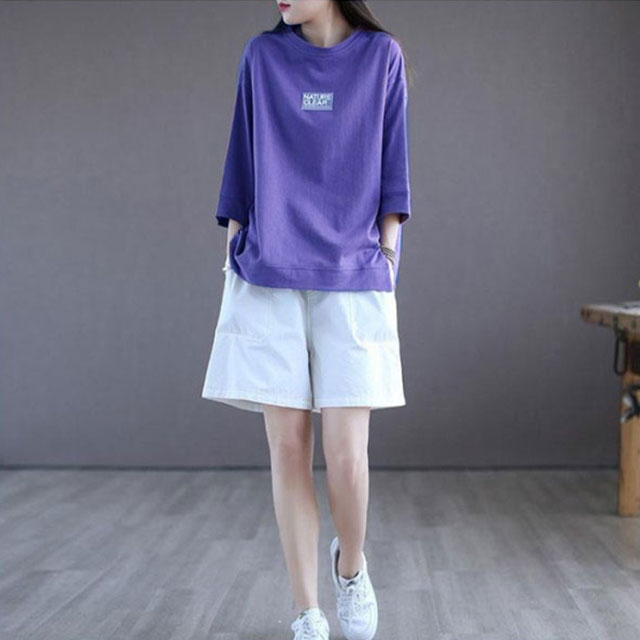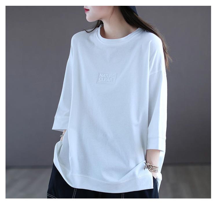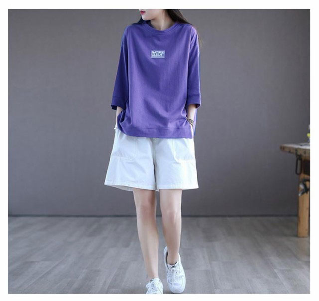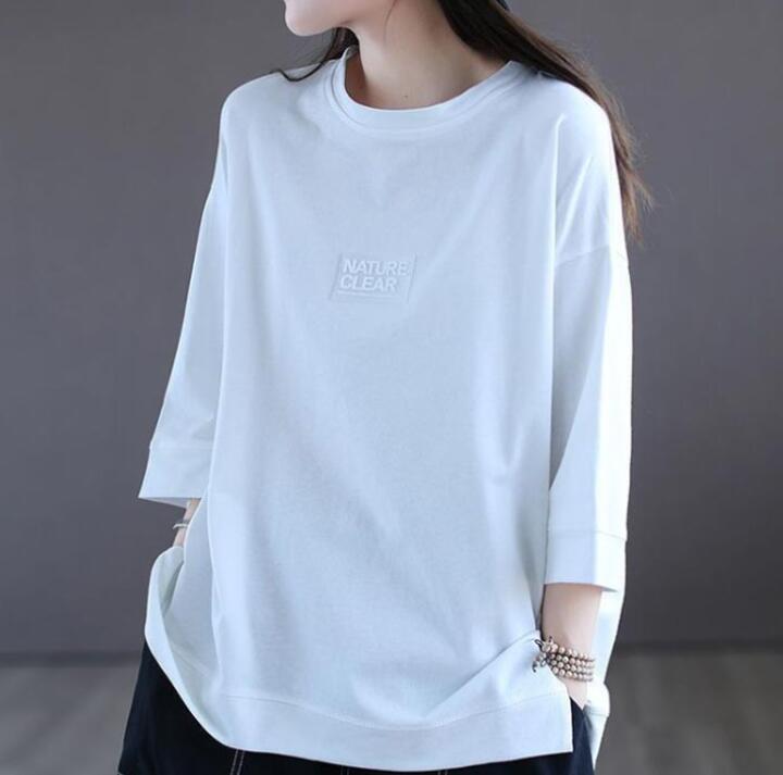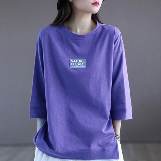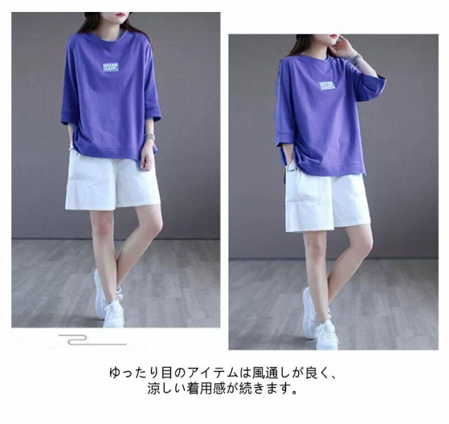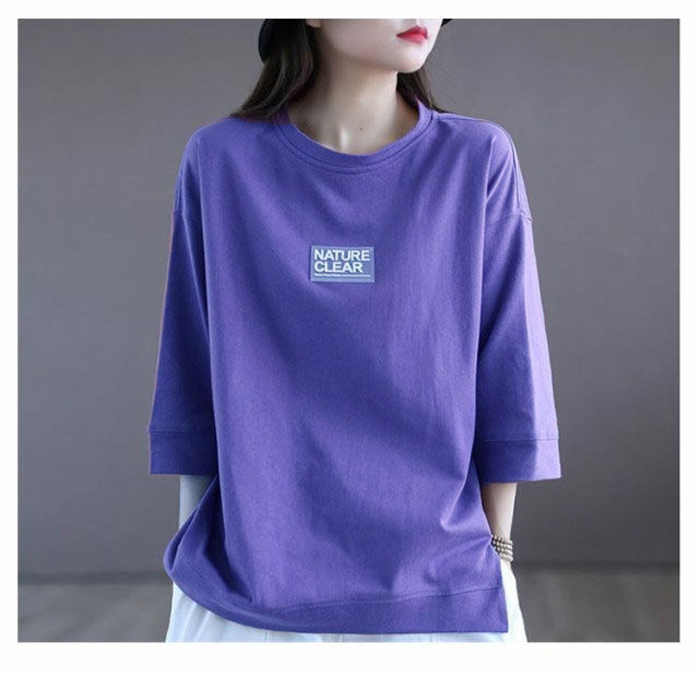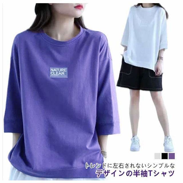 送料無料 Tシャツ 7分袖 レディース 半袖 トップス 春 夏 丸首 クルーネック カットソー ゆったり ワンポイント 大きいサイズ 無地 ビッグtシャツ カジュアル 通勤 男女兼用 M-3XL
