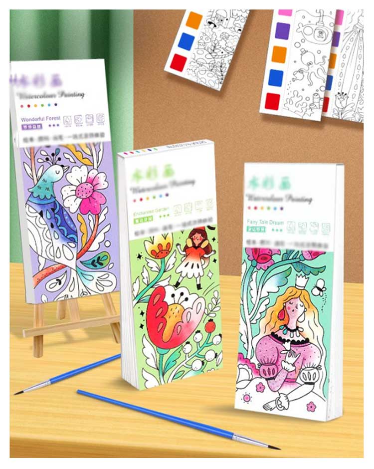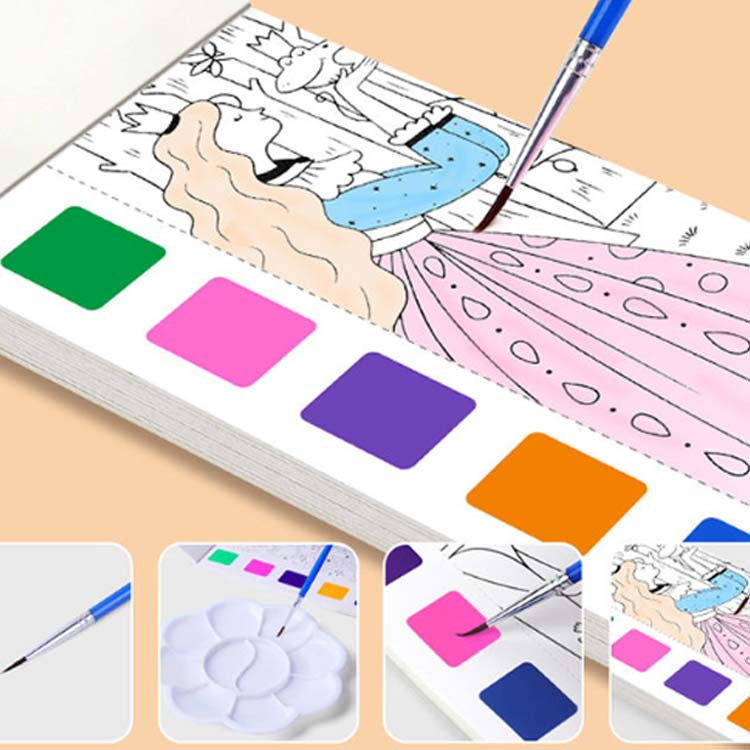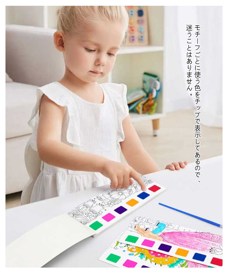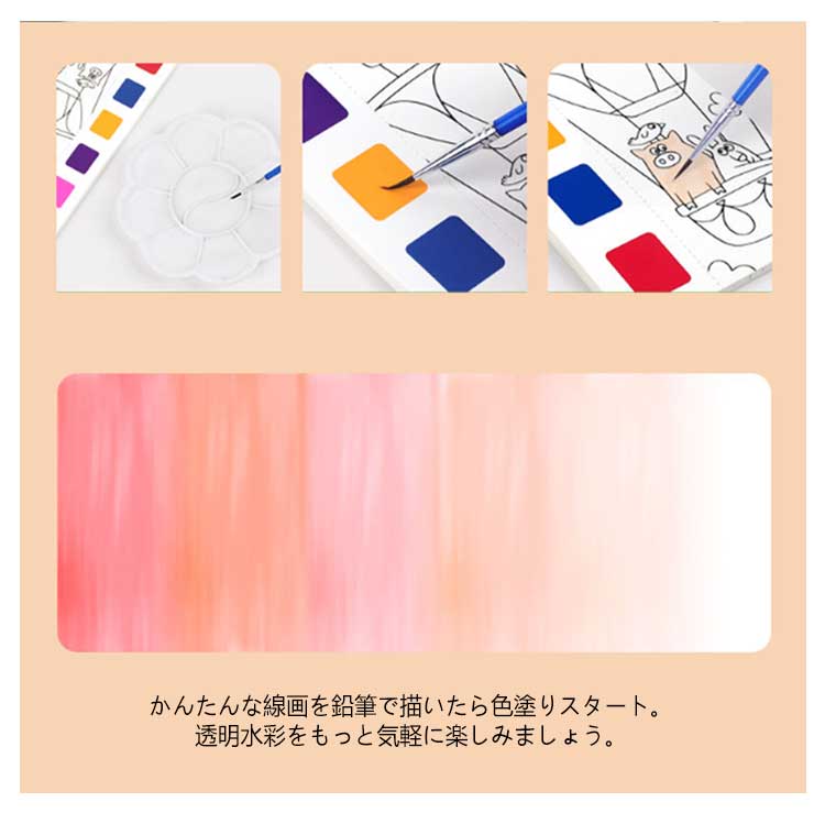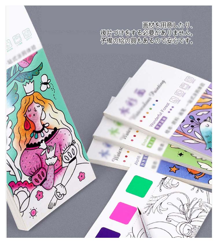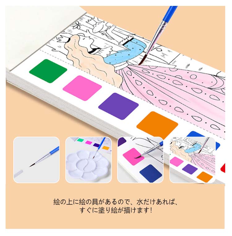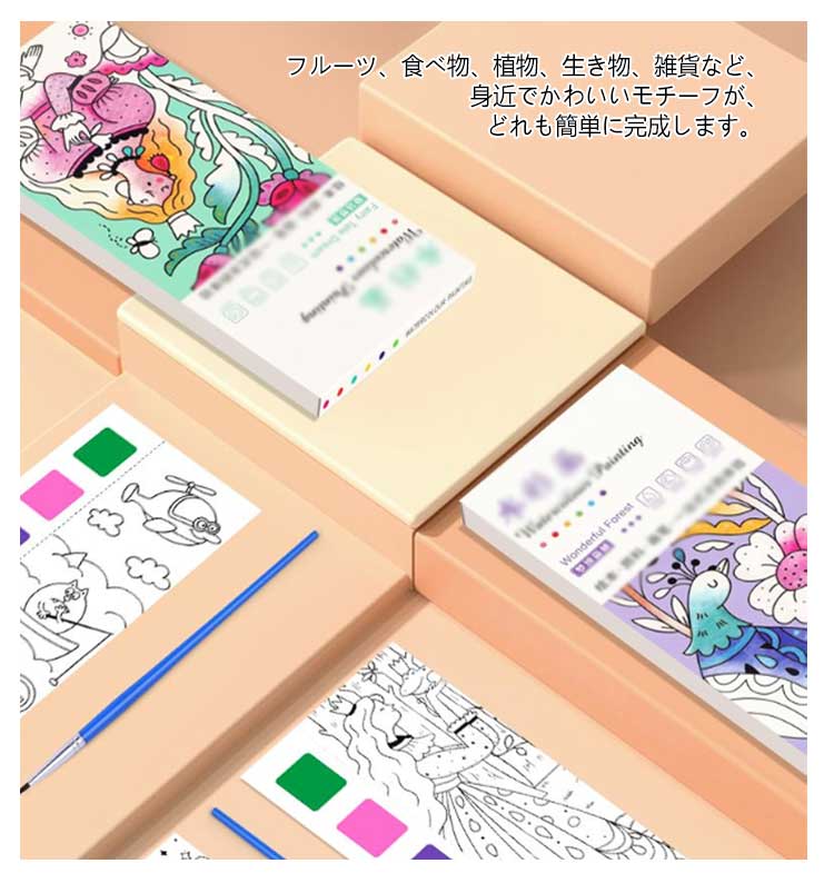 水彩塗り絵 絵の具がいらない 筆付き ぬり絵 塗り 固形水彩 こどもの塗り絵 お絵描きセット 子供 ぬりえ セット キャラクター しおり かわいい おうち時間 携帯便利 初心者 小学生 知育教育 プレゼント お誕生日