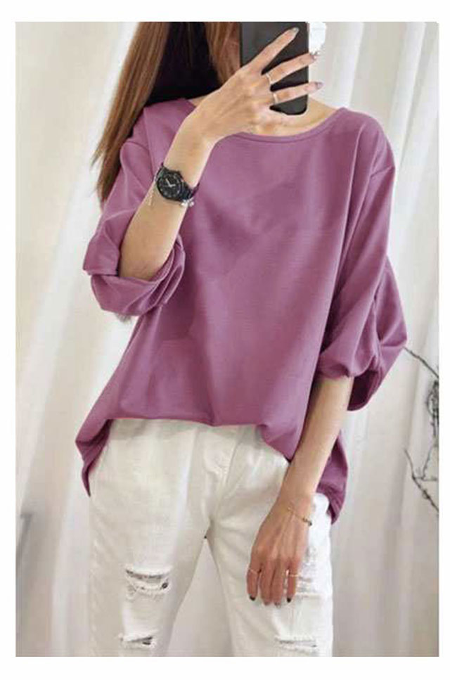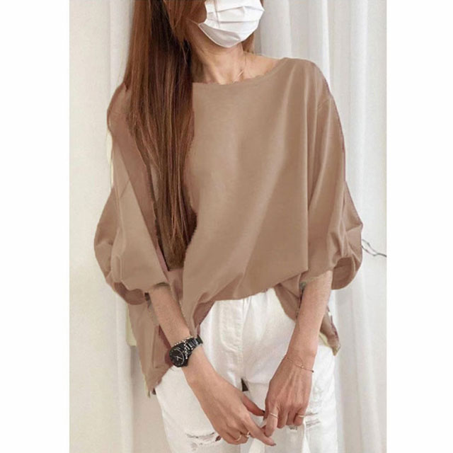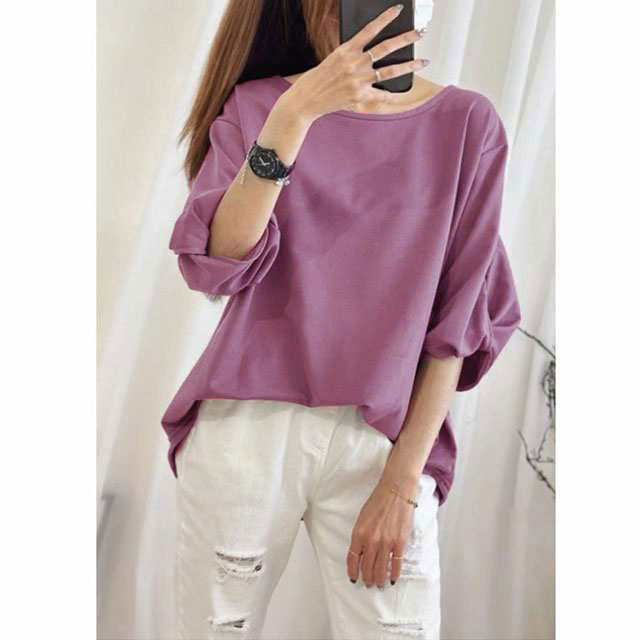 ブラウス Tシャツ 七分袖 tシャツ トップス レディース 春夏 ブラウス 無地 プルオーバー フレア おしゃれ 夏 ゆったり 体型カバー 可愛い カジュアル ルームウェア