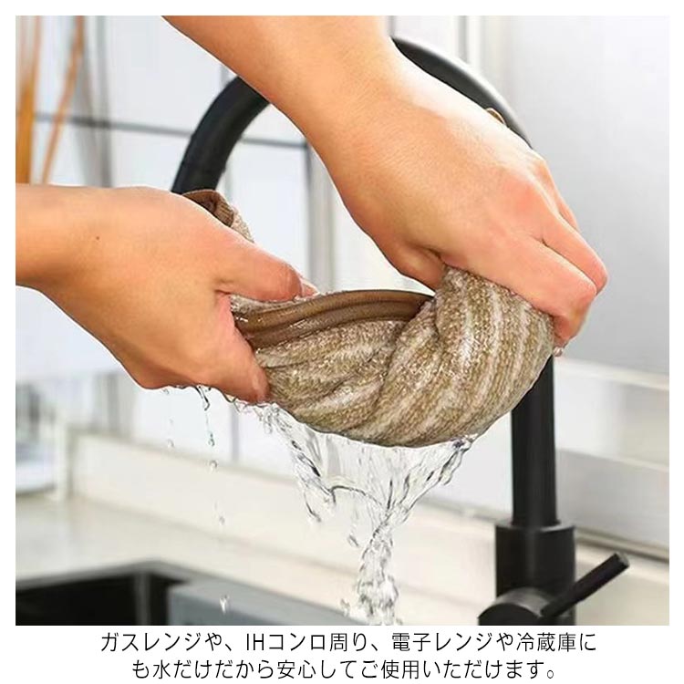 | 頑固な油汚れも水だけでキレイに落とす? 使い方は簡単、水に濡らしたクロスを絞って、汚れを拭きとるだけ! ガスレンジや、IHコンロ周り、電子レンジや冷蔵庫にも水だけだから安心してご使用いただけます。 水やぬるま湯で軽くすすぐだけでOK! 洗剤を使わずにスルッと汚れが落ちます。 使った後は吊り下げループで吊り下げておけます。 | |