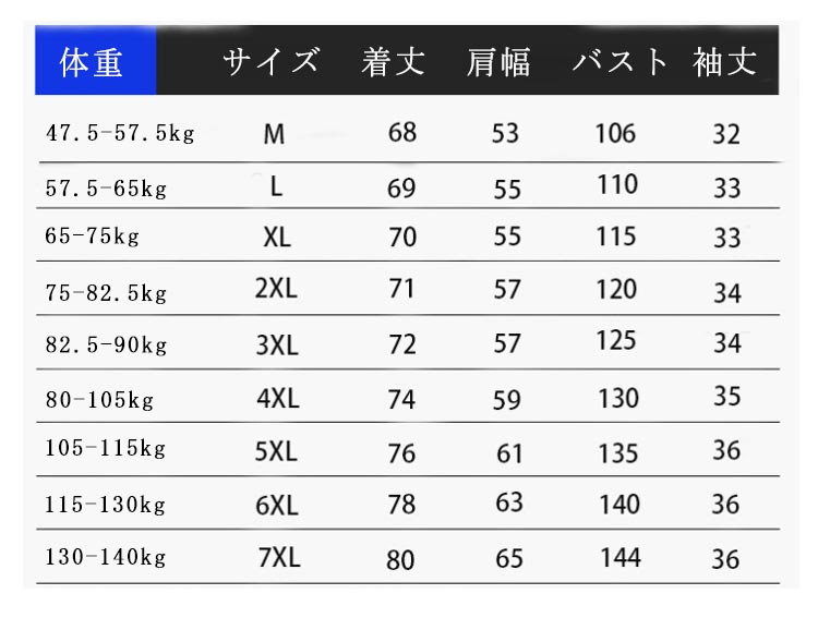 | サイズ | M L XL 2XL 3XL 4XL 5XL |