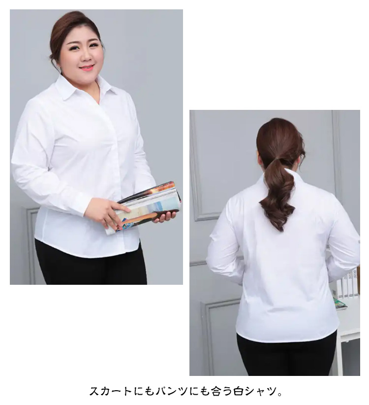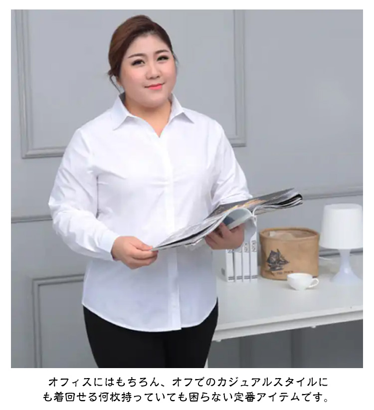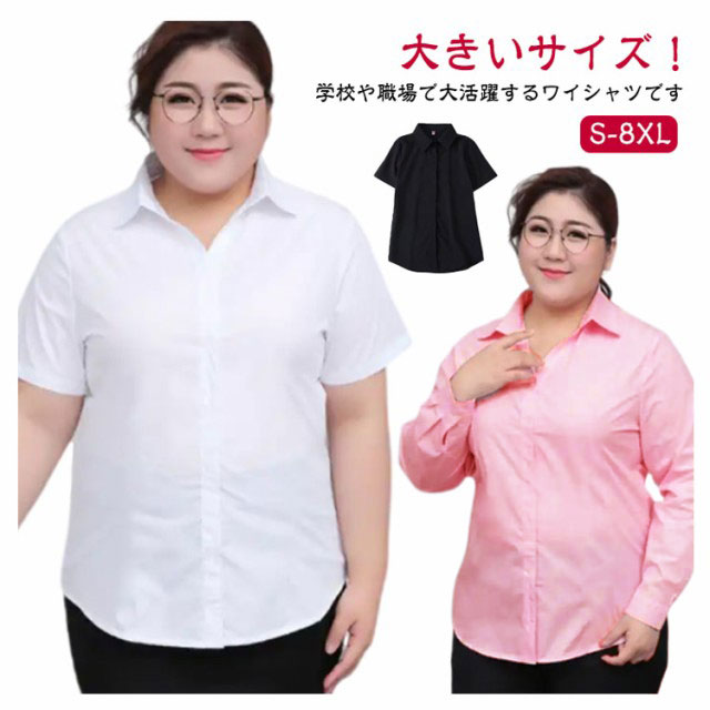 S-8XL 大きいサイズ!学校や職場で大活躍するワイシャツです。スカートにもパンツにも合う白シャツ。オフィスにはもちろん、オフでのカジュアルスタイルにも着回せる何枚持っていても困らない定番アイテムです。通勤、オフィス、入学式、七五三の日…単品としてもスーツインナーとしても華やかに決める!リクルートやフォーマルスタイルなど多様なシーンで活躍してくれます。OLさんにもお勧め!