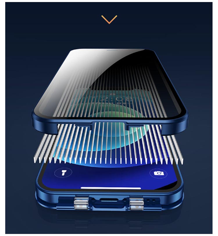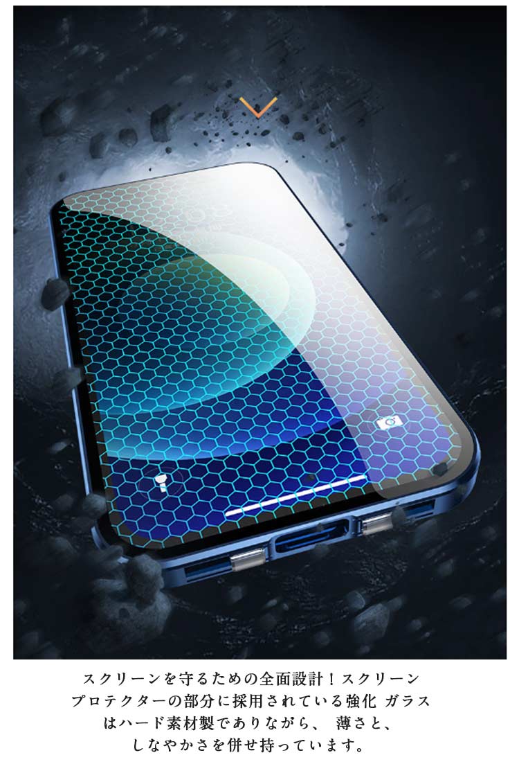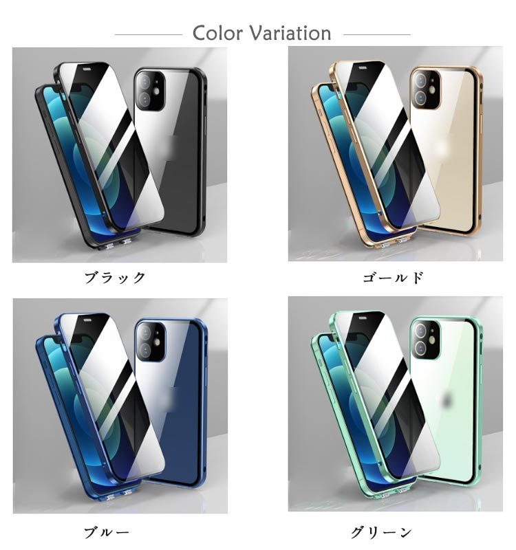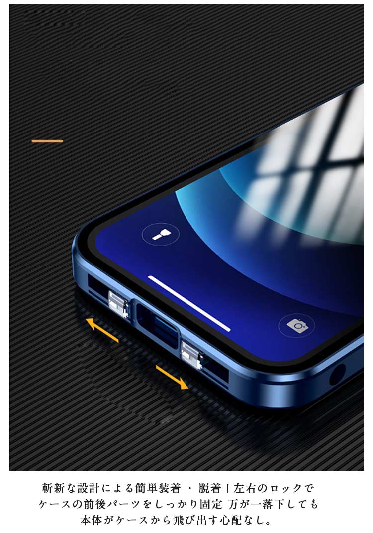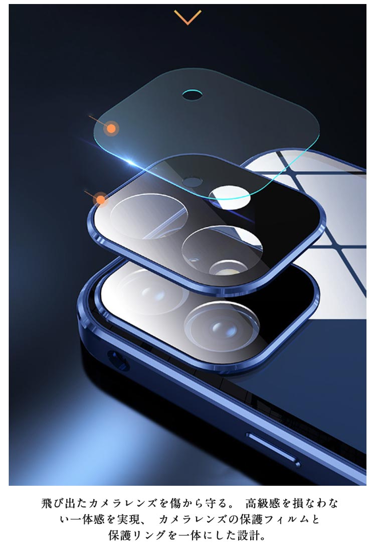 【覗き見防止・前後ガラスケース】iphoneケース。メタルの質感がたまらない、 全方向の衝撃からiPhoneを守る。薄型・軽量設計でありながら、メタル製パンパーとガラス製前後プレートを配備した2ピース構造となっており、iPhone本体特有の演出を損なうことなく表現出来るケースです。左右2方向の覗き見防止機能が 電車や公共の場所でプライバシ。電車や人が混み合う公共の場で、安心してiPhoneを楽しむことがで きるようになりました。iPhoneが目線から45度傾くとディスプレイは見えなくなり、あなたのプライバシーを守ります。飛び出たカメラレンズを傷から守る。高級感を損なわない一体感を実現、カメラレンズの保護フィルムと保護リングを一体にした設計。スクリーンを守るための全面設計!スクリーンプロテクターの部分に採用されている強化 ガラスはハード素材製でありながら、薄さと、しなやかさを併せ持っています。斬新な設計による簡単装着・脱着!左右のロックでケースの前後パーツをしっかり固定 万が一落下しても本体がケースから飛び出す心配なし。