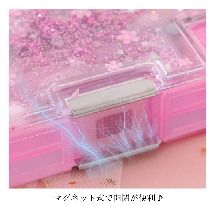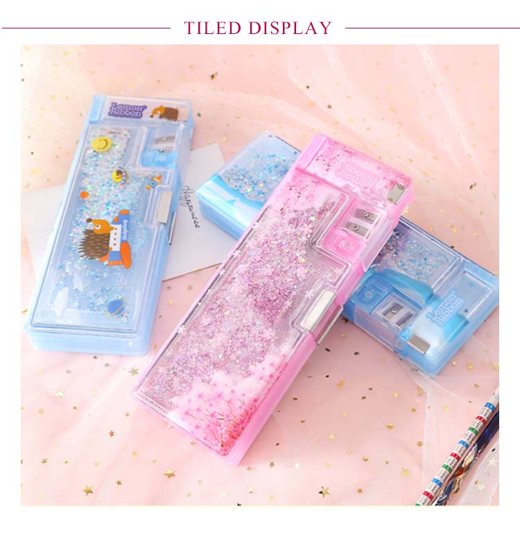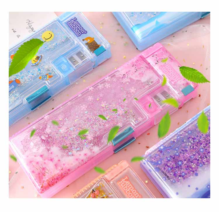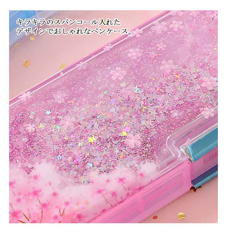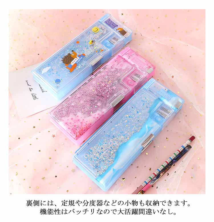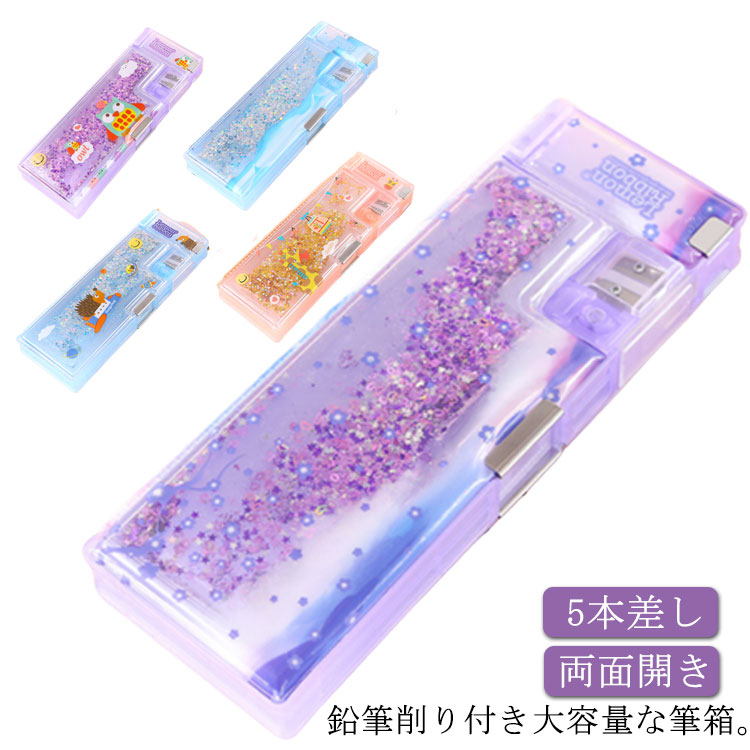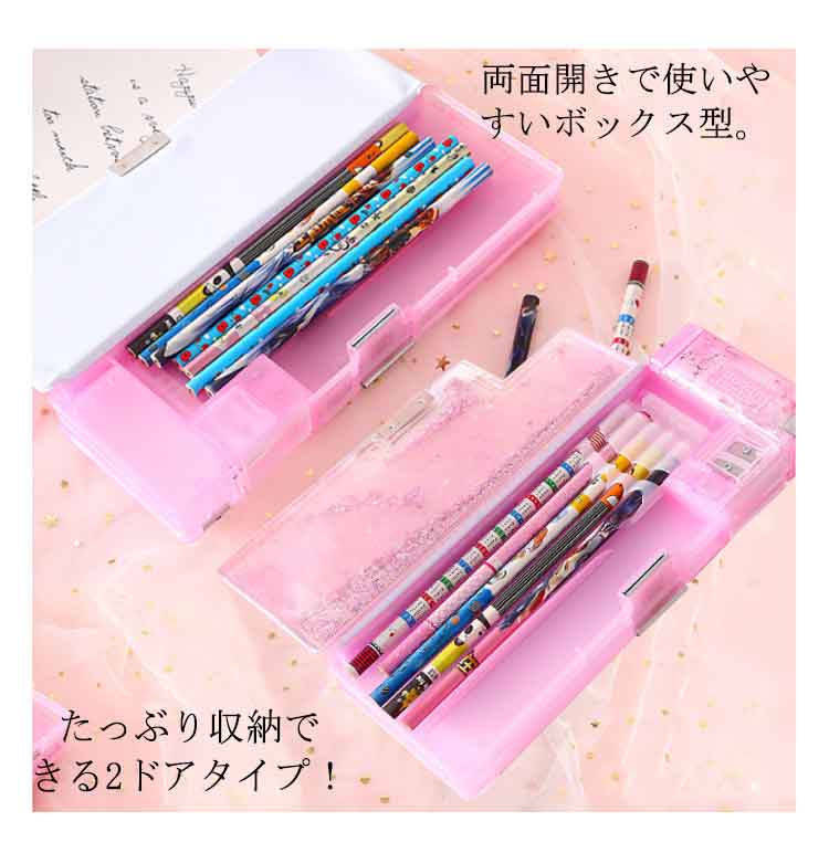スパンコール流砂筆箱 両面 箱型 ペンケース 鉛筆削り付き 大容量 5本差し 鉛筆ボルダー 両面開き 2ドア マグネット ふでばこ ペンケース 文房具 筆入れ ペンポーチ 筆記用具 便利 かわいい 入学準備 入学祝い ギフト