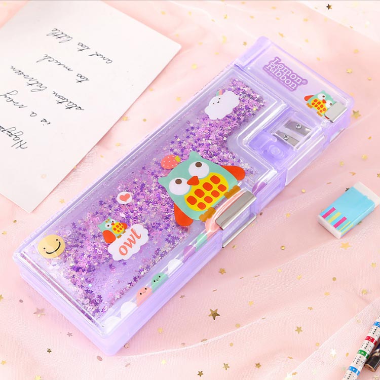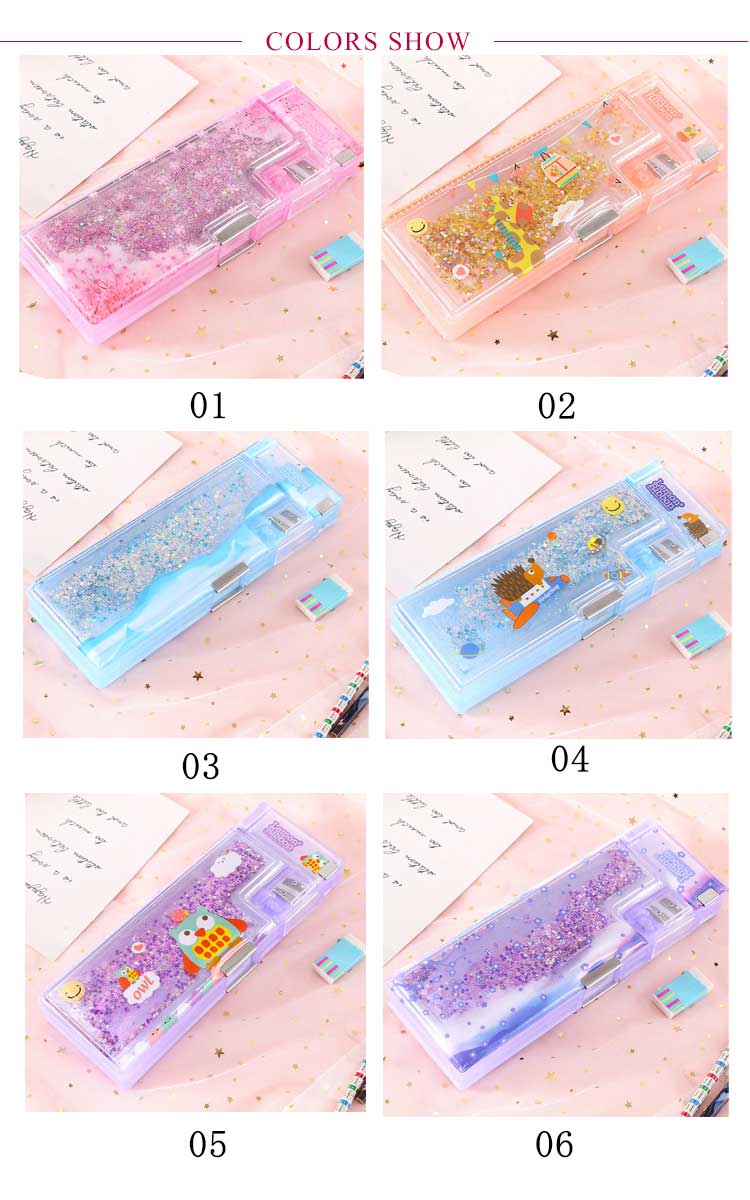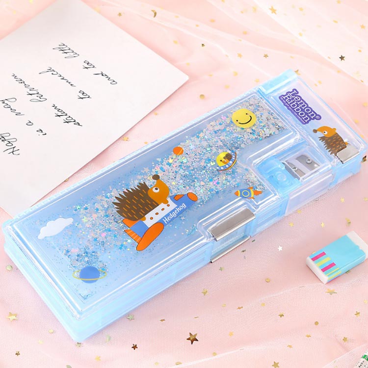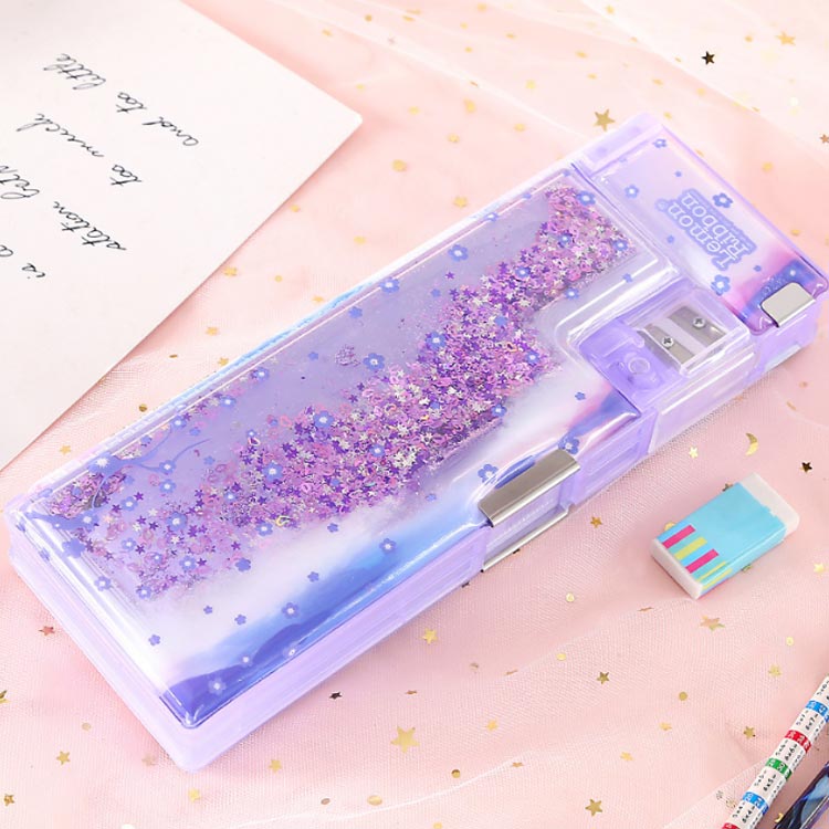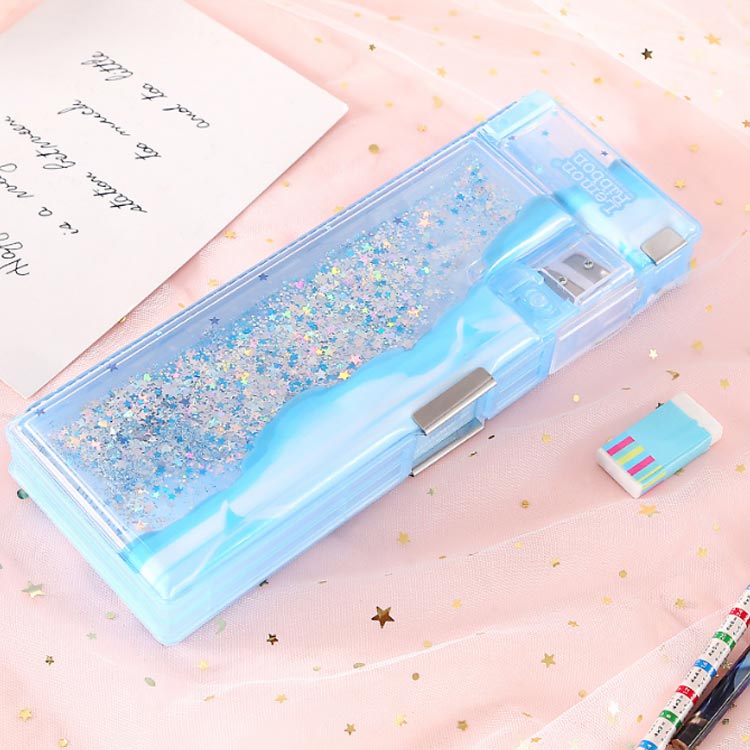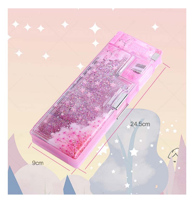 スパンコール流砂筆箱 両面 箱型 ペンケース 鉛筆削り付き 大容量 5本差し 鉛筆ボルダー 両面開き 2ドア マグネット ふでばこ ペンケース 文房具 筆入れ ペンポーチ 筆記用具 便利 かわいい 入学準備 入学祝い ギフト