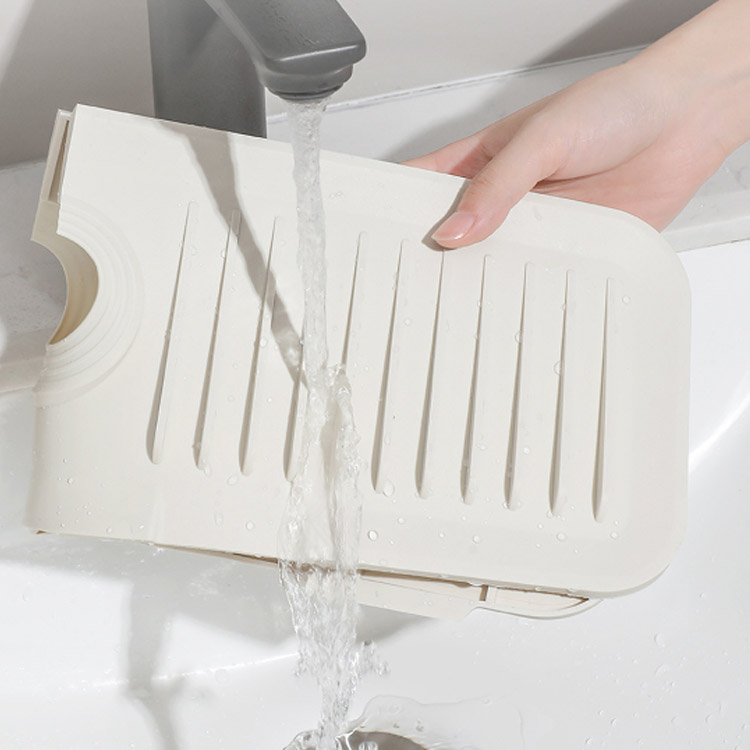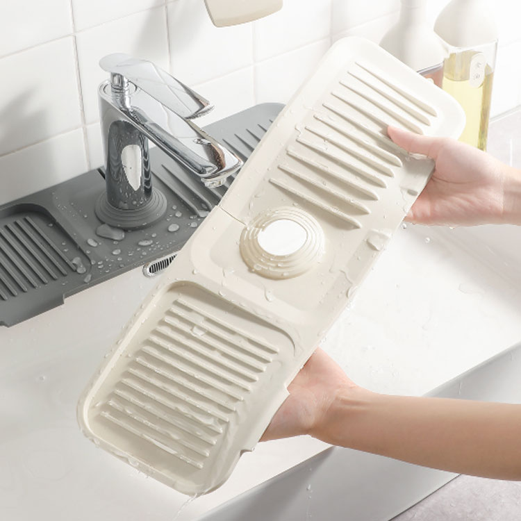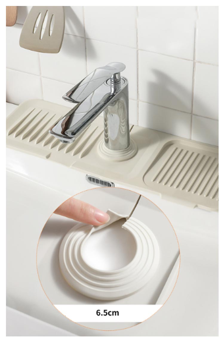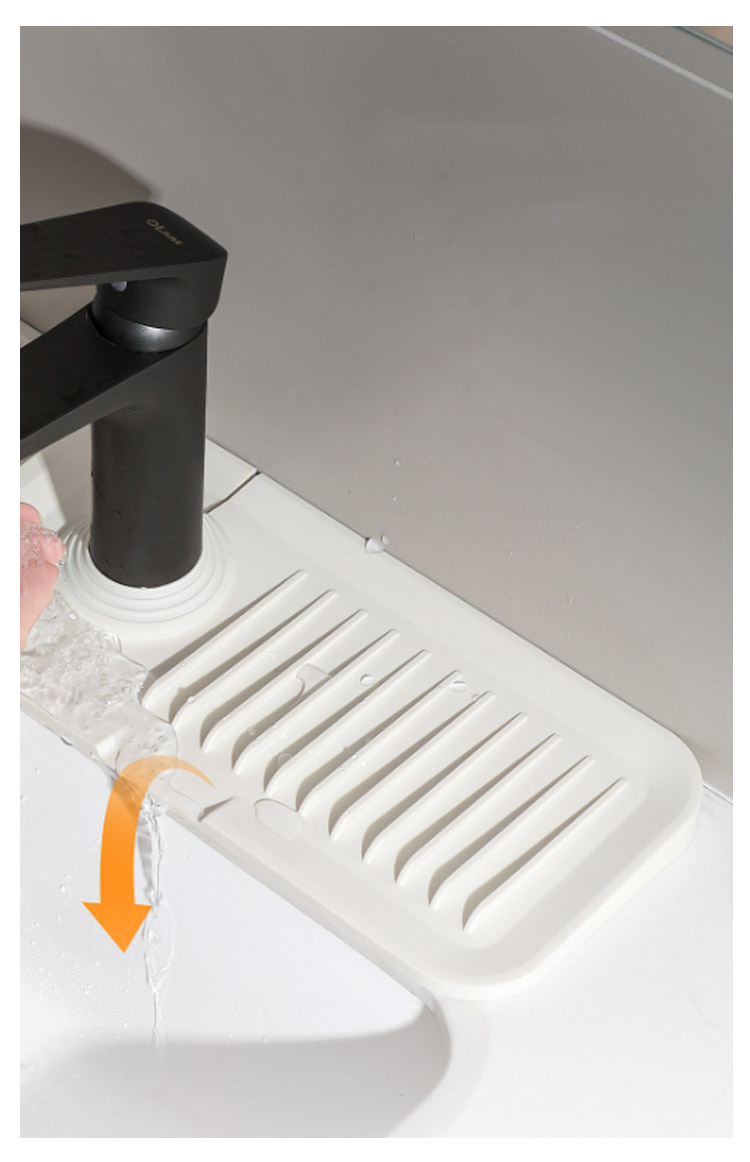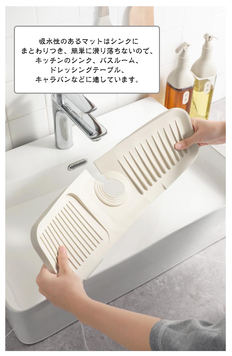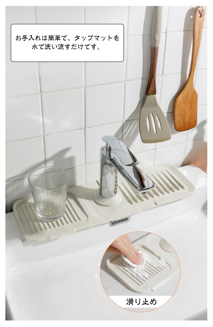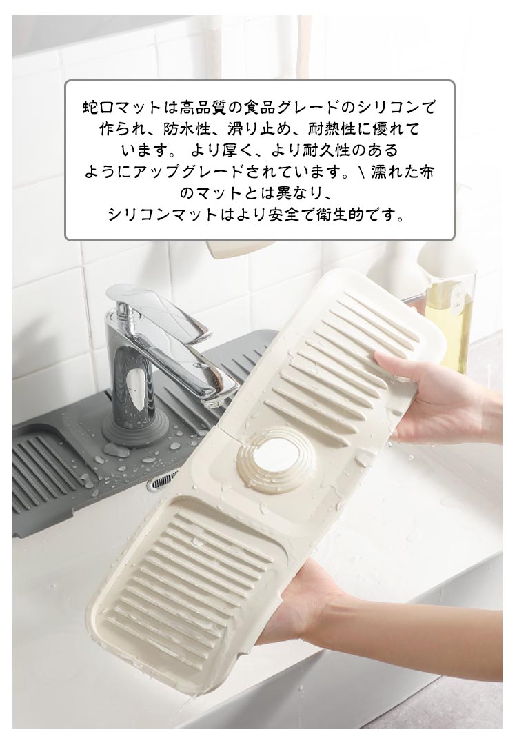 シリコーン 水切りマット 蛇口排水マット シンク蛇口用 速乾 抗菌 滑り止め 水汚れ防止 シリコン スロープデザイン 効果的な排水性 蛇口用シリコン水切りマット ホワイト 長い ロング 白