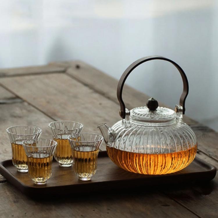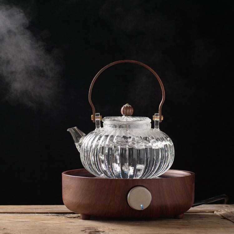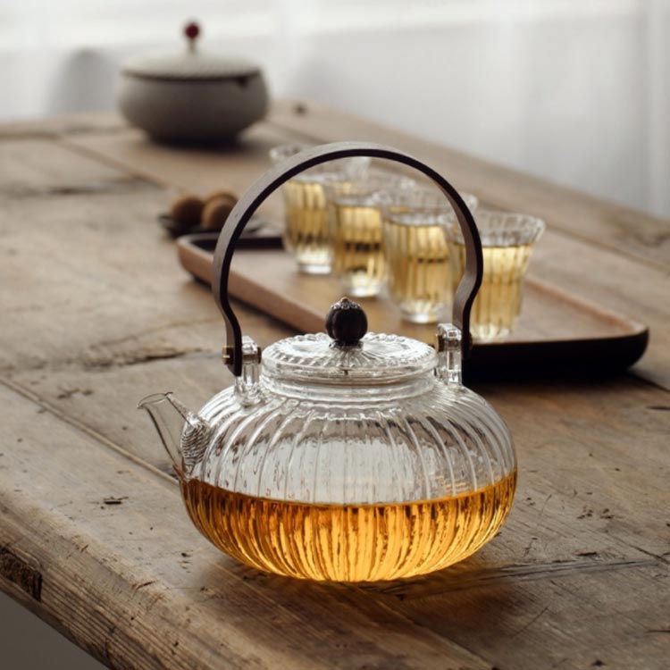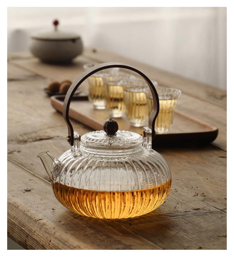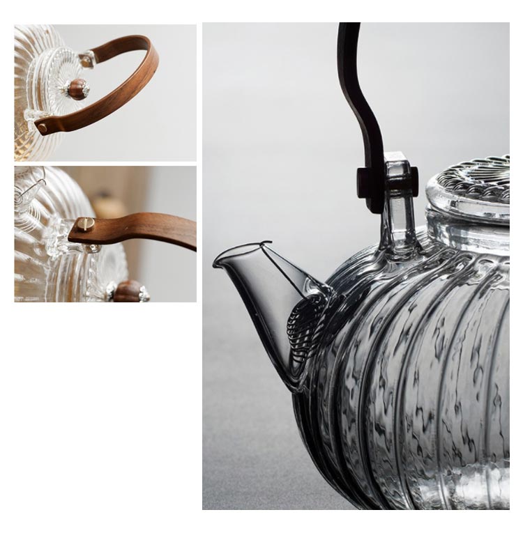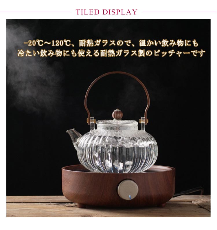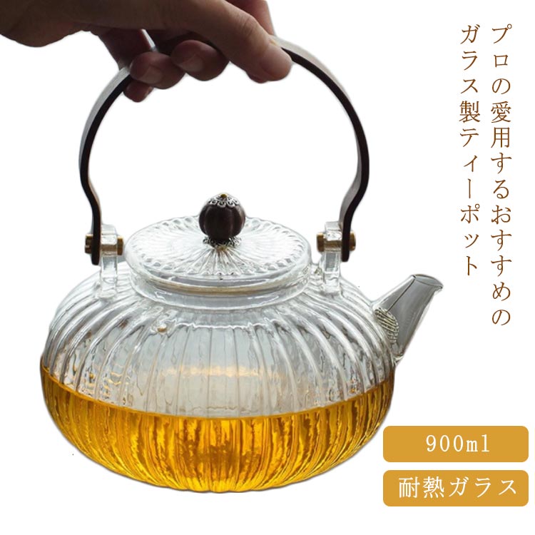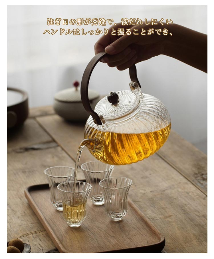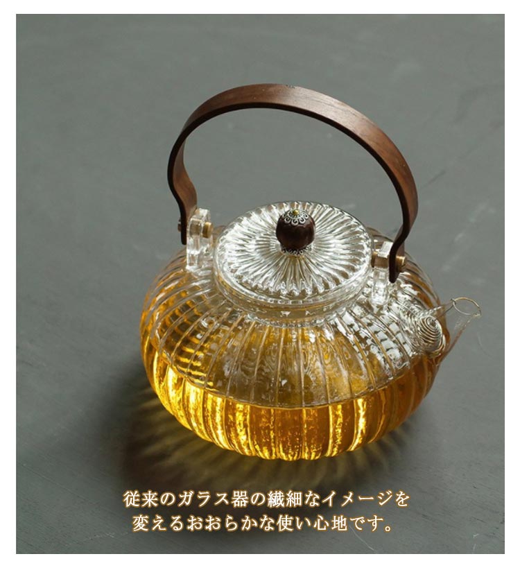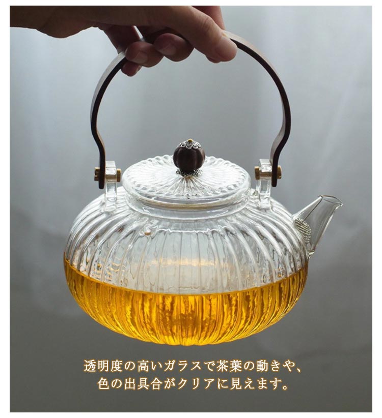 ガラス 急須 ガラス製ポット ガラス急須 ハンドル付き 茶こし付き クルミ持ち手 耐熱ガラス ティーポット 直火対応 直火 直火可 ジャンピング 紅茶ポット フルーツティー 花茶 工芸茶 ハーフティー