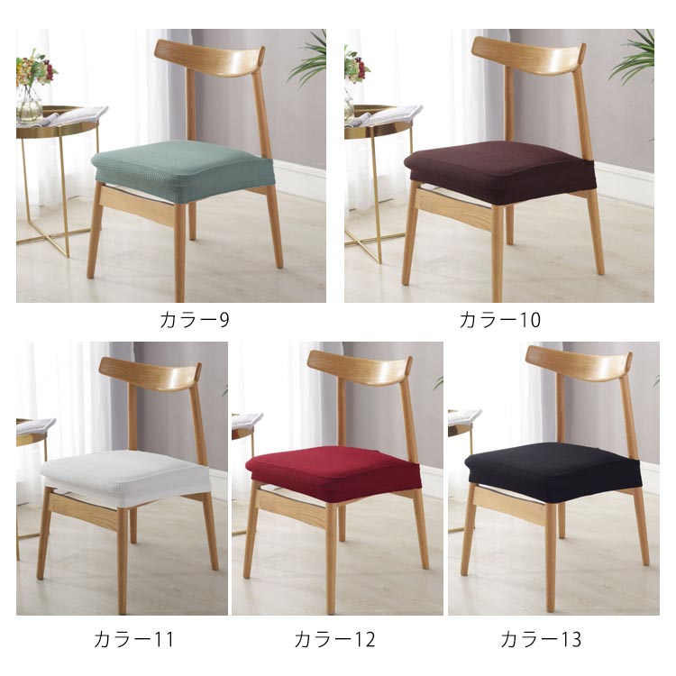 | 伸縮性ストレッチ素材使用で、椅子にぴったりフィットします! お部屋のインテリアにあわせて、13色からお選びいただけます。 チェアカバーだけ変わると、部屋の雰囲気が一瞬変わります! 上から被せるだけで、生地が伸縮し座面にフィットしてくれます! 一番汚れが付きやすい座面の保護となり、古い座面の猫の爪とぎ跡、ヒビ割れ、毛玉などを完璧で隠せます。 捨てるのも惜しいご愛用のイスが真っ新なおしゃれなイスへと大変身。 質感のいい素材の上、落ち着いた色合いで、部屋も明るくなれ、気分転換に変えたりできます。 ダイニングチェア?デスクチェア?椅子など、背もたれのあるタイプの椅子であれば、幅広く対応できます! 家庭?ホテルだけではなく、パーティー、結婚式、披露宴などにも活躍できる一品です。 カバーをつけるだけで、見慣れた家具の印象がガラッと変わります。 汚れたら洗濯機で洗えるので、小さいお子様やペットのいるご家庭でも安心してご使用いただけます | |